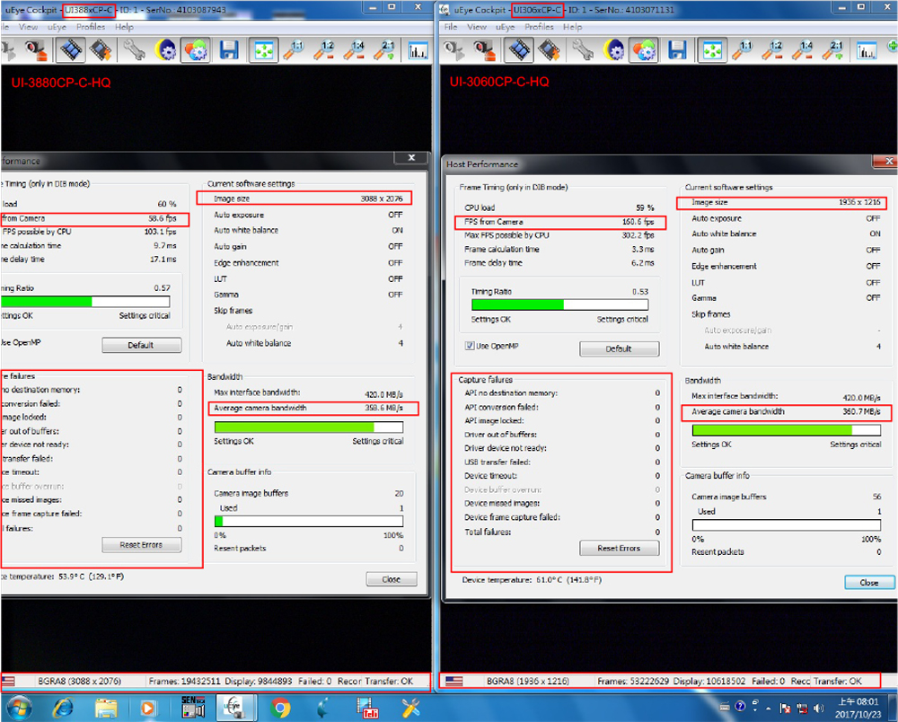 Test 3- UI-3070CP-C-HQ + UI-3180CP-C-HQ