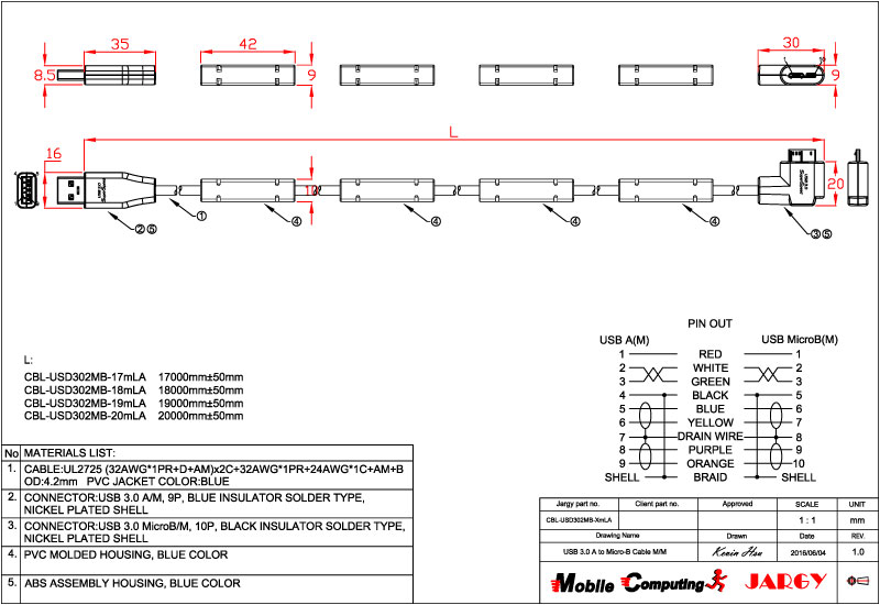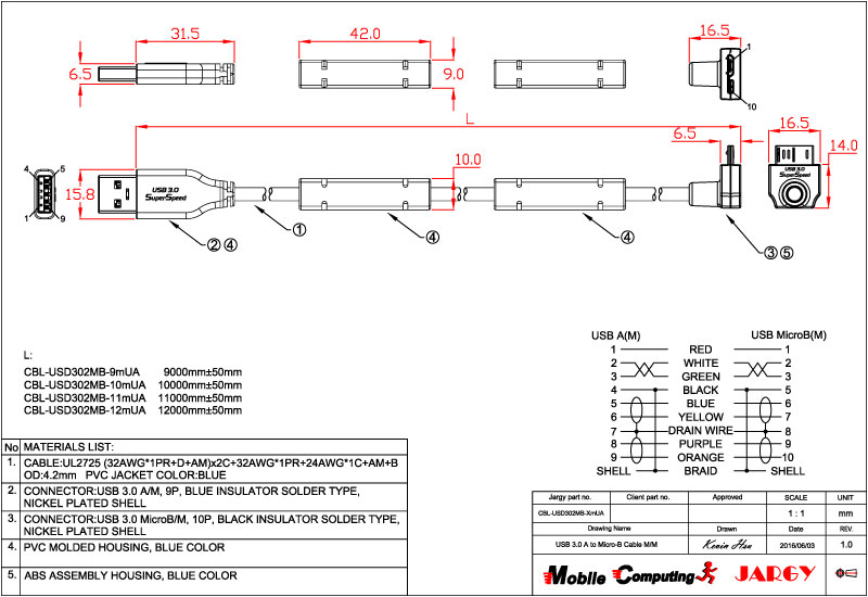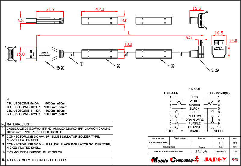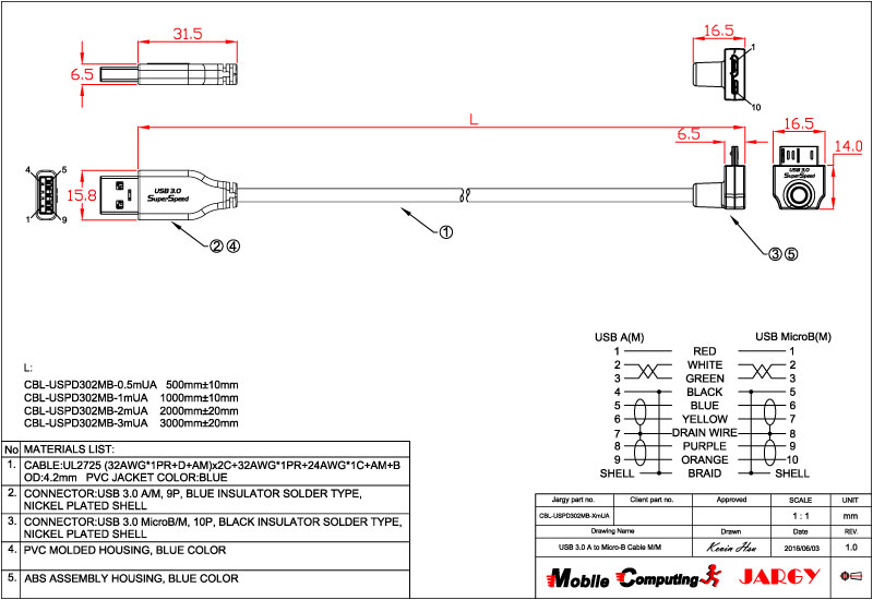 CBL-USPD302MB-0.5m/1m/2m/3m