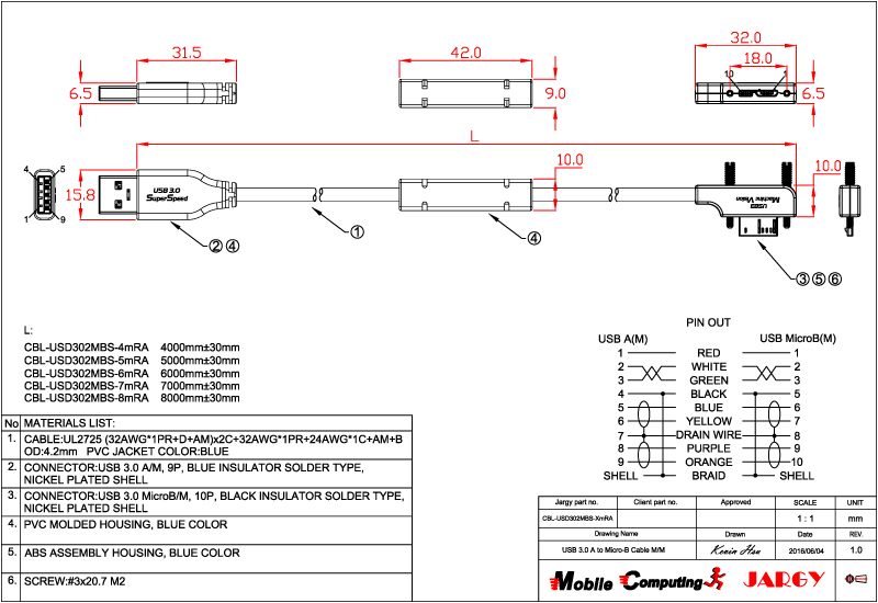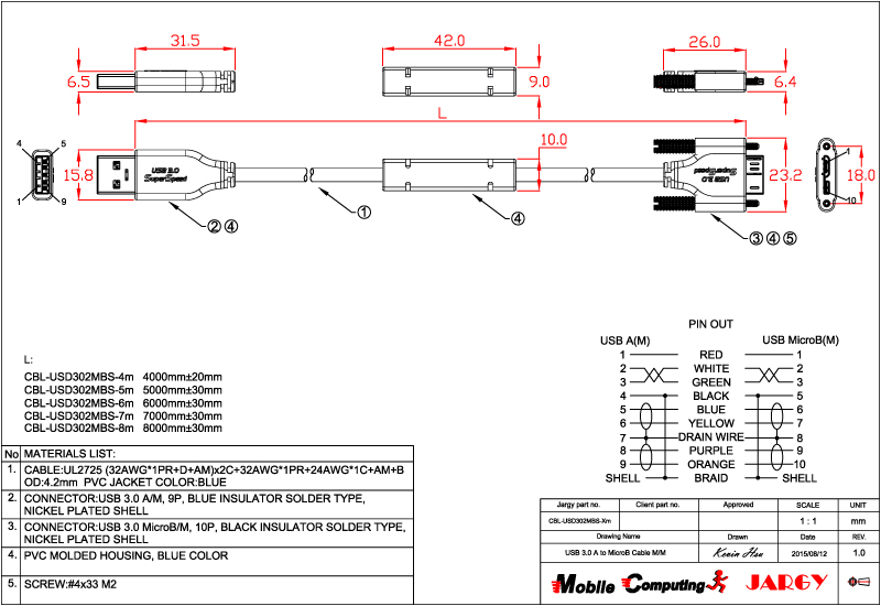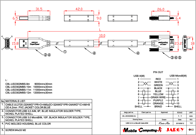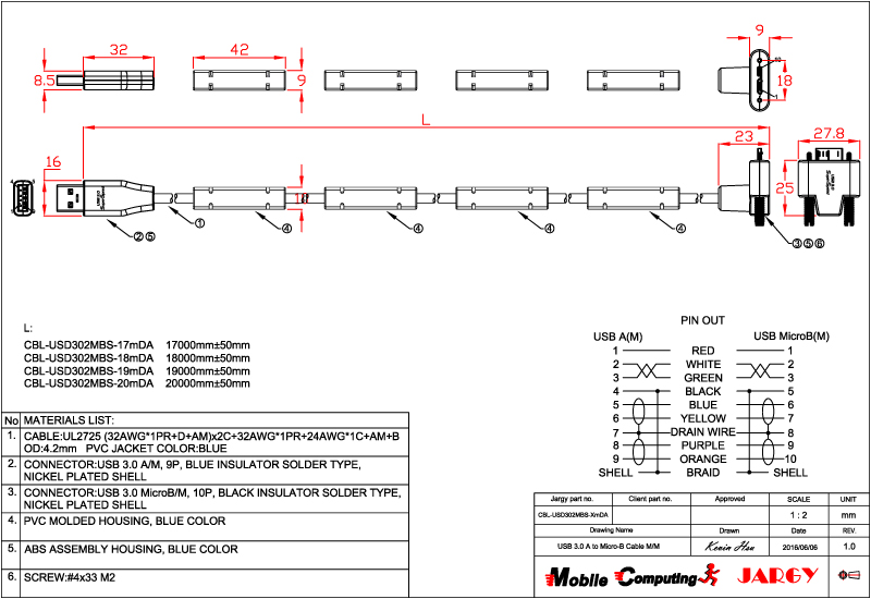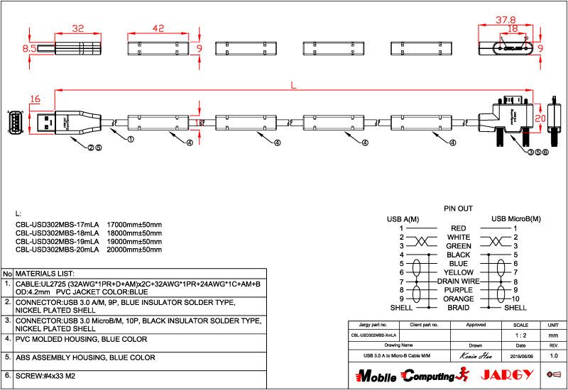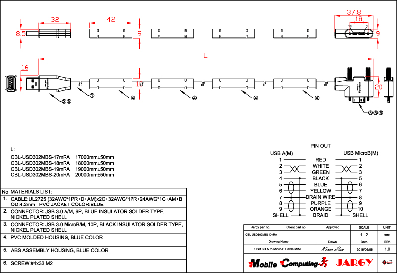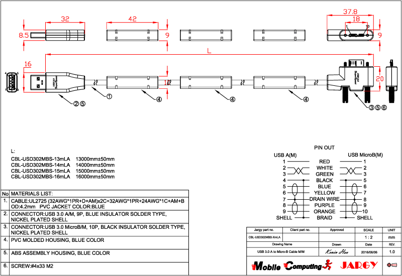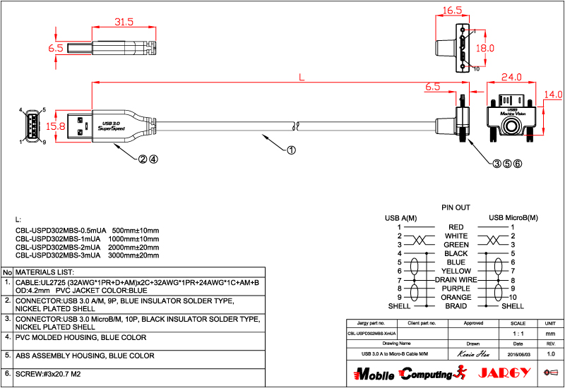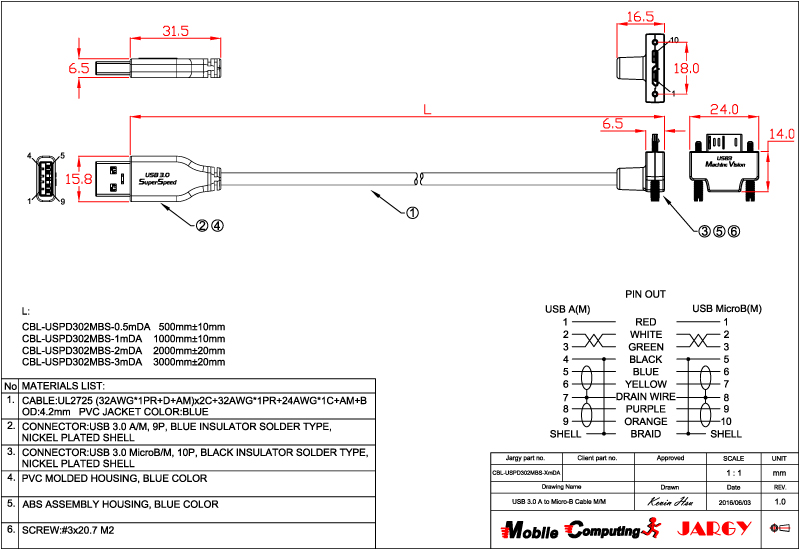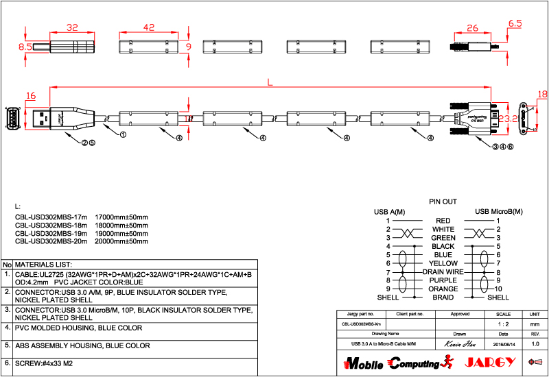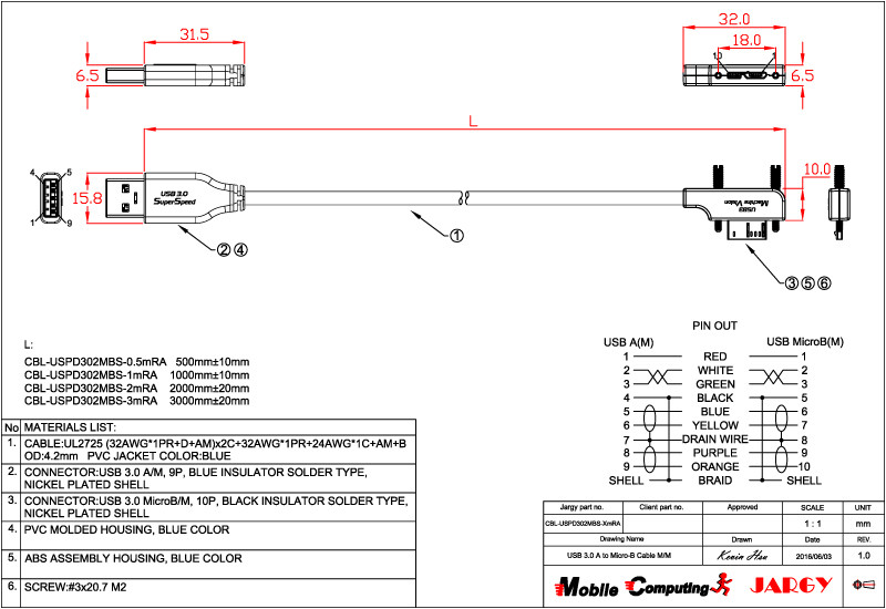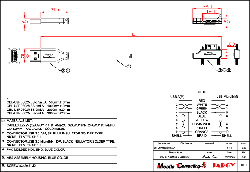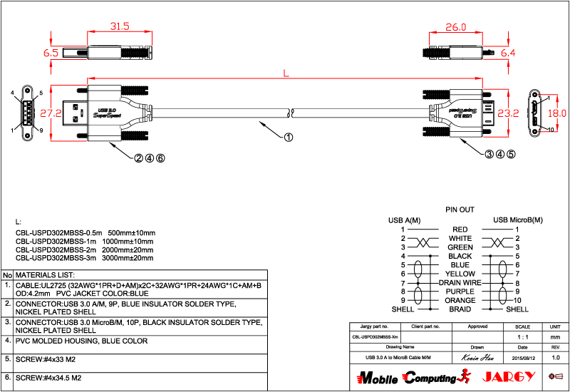 CBL-USPD302MBS-0.5m/1m/2m/3m