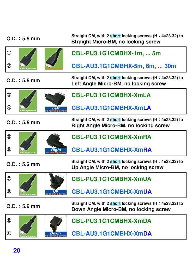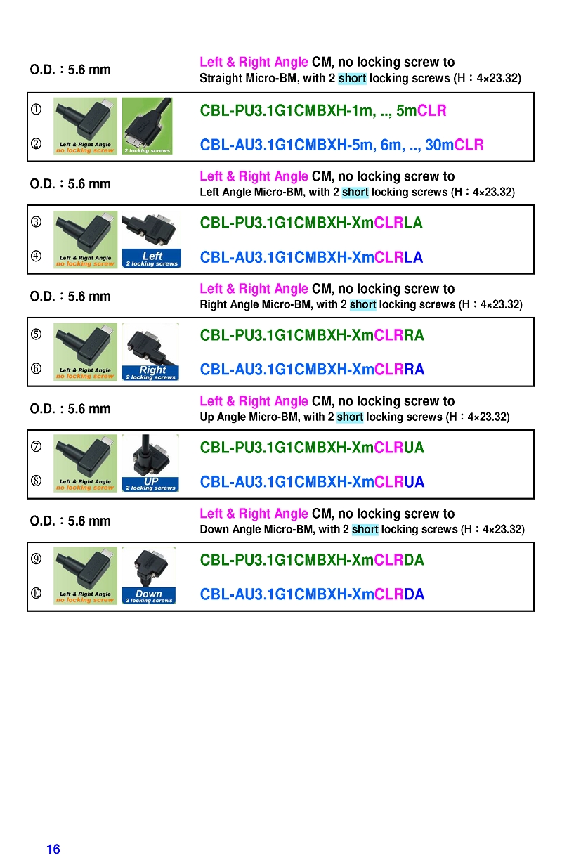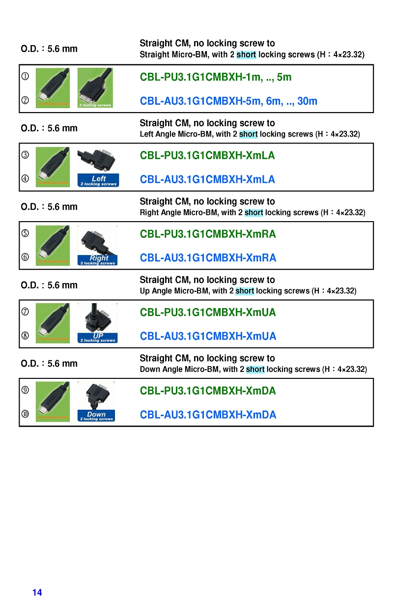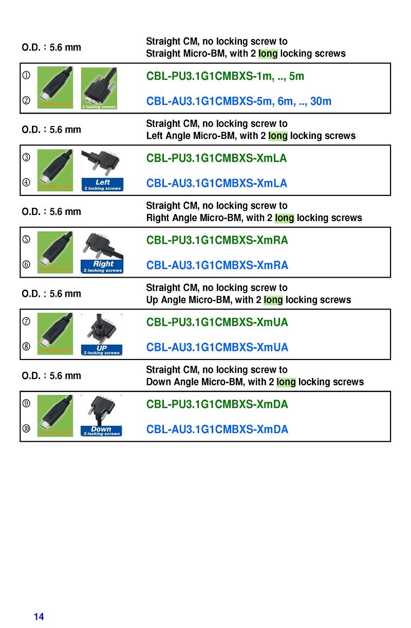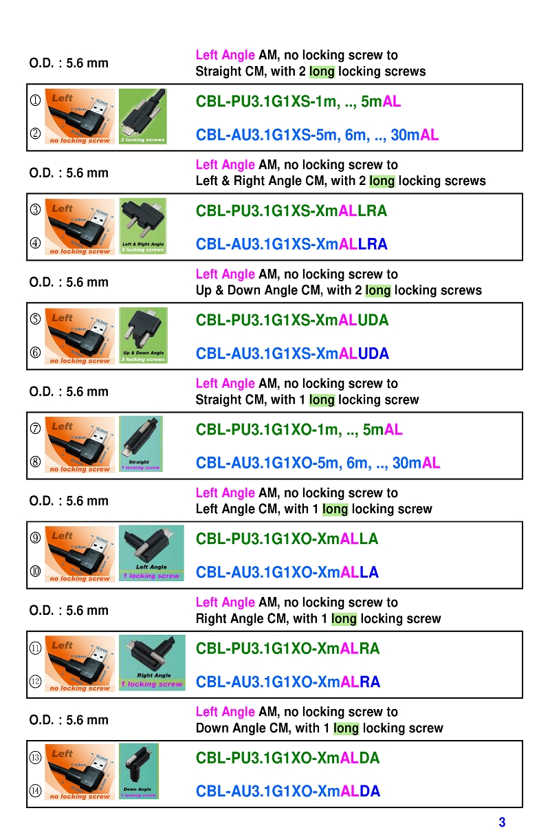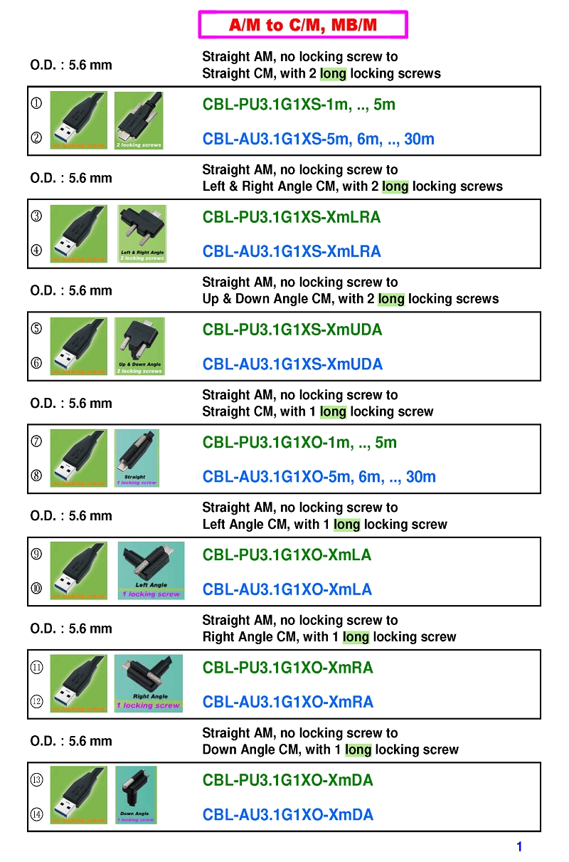 USB3 Straight A to Angled Micro-B or B Machine Vision Camera Cables-M/M