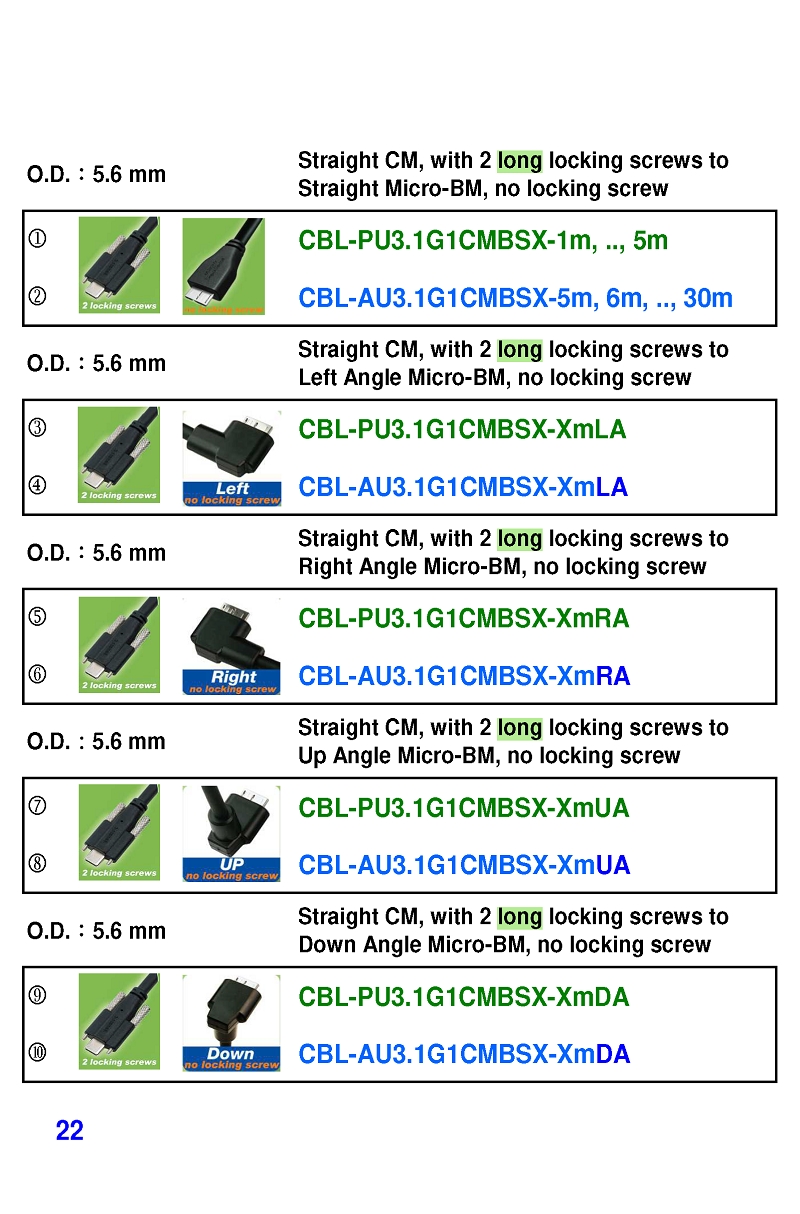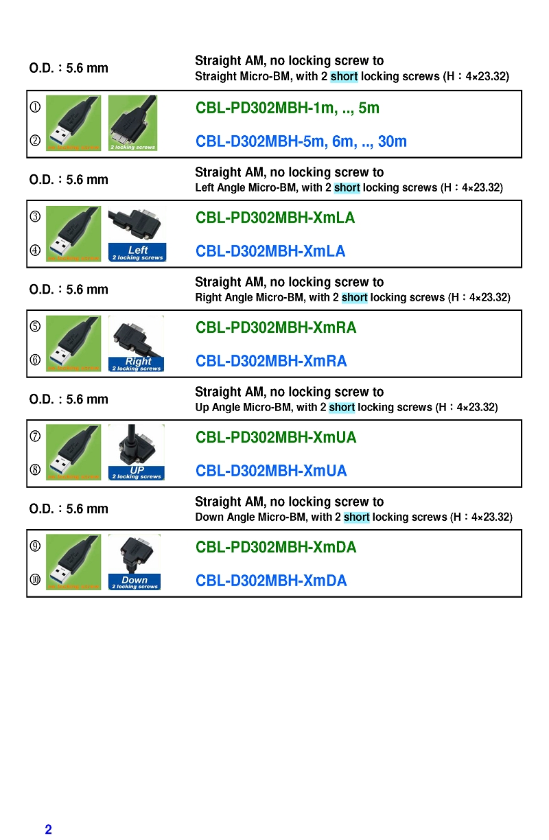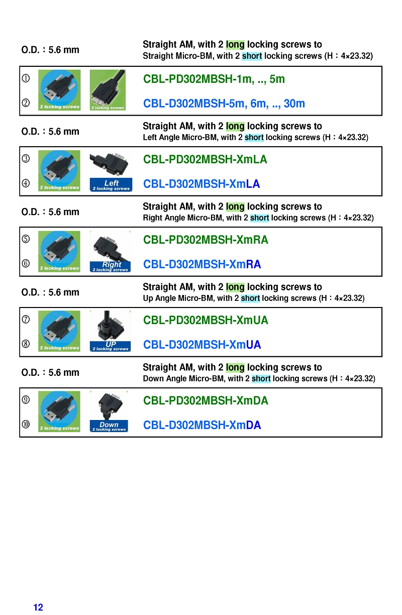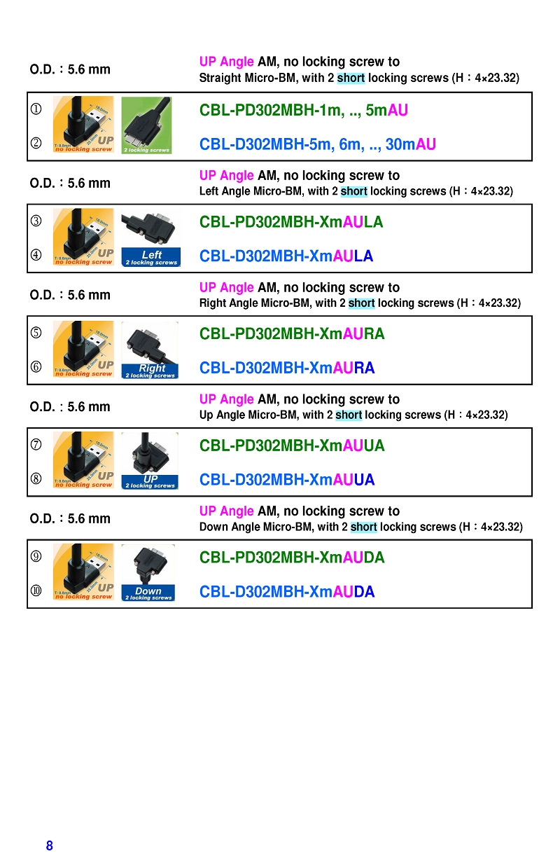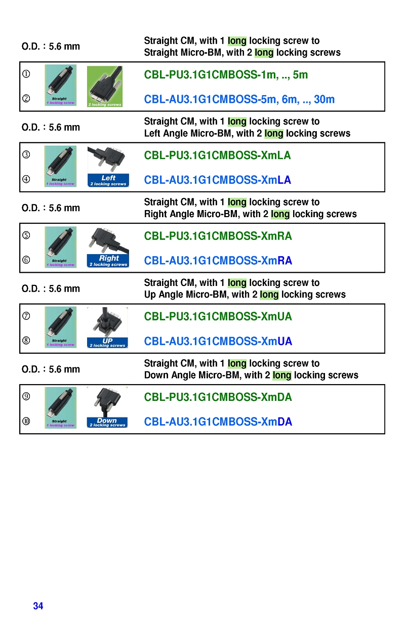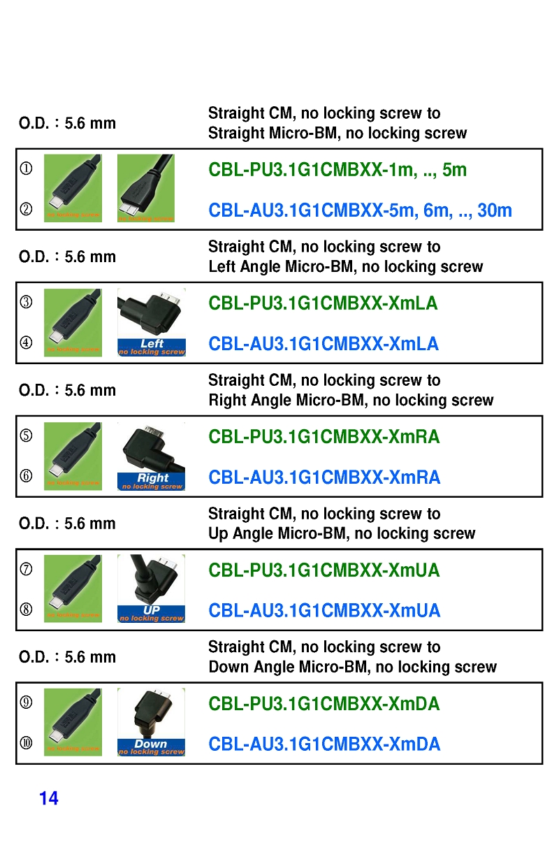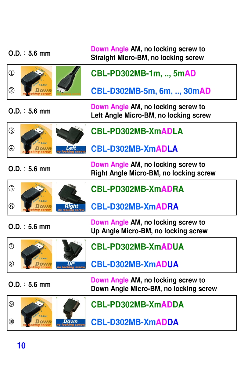 USB3 Straight A to Angled Micro-B or B Machine Vision Camera Cables-M/M