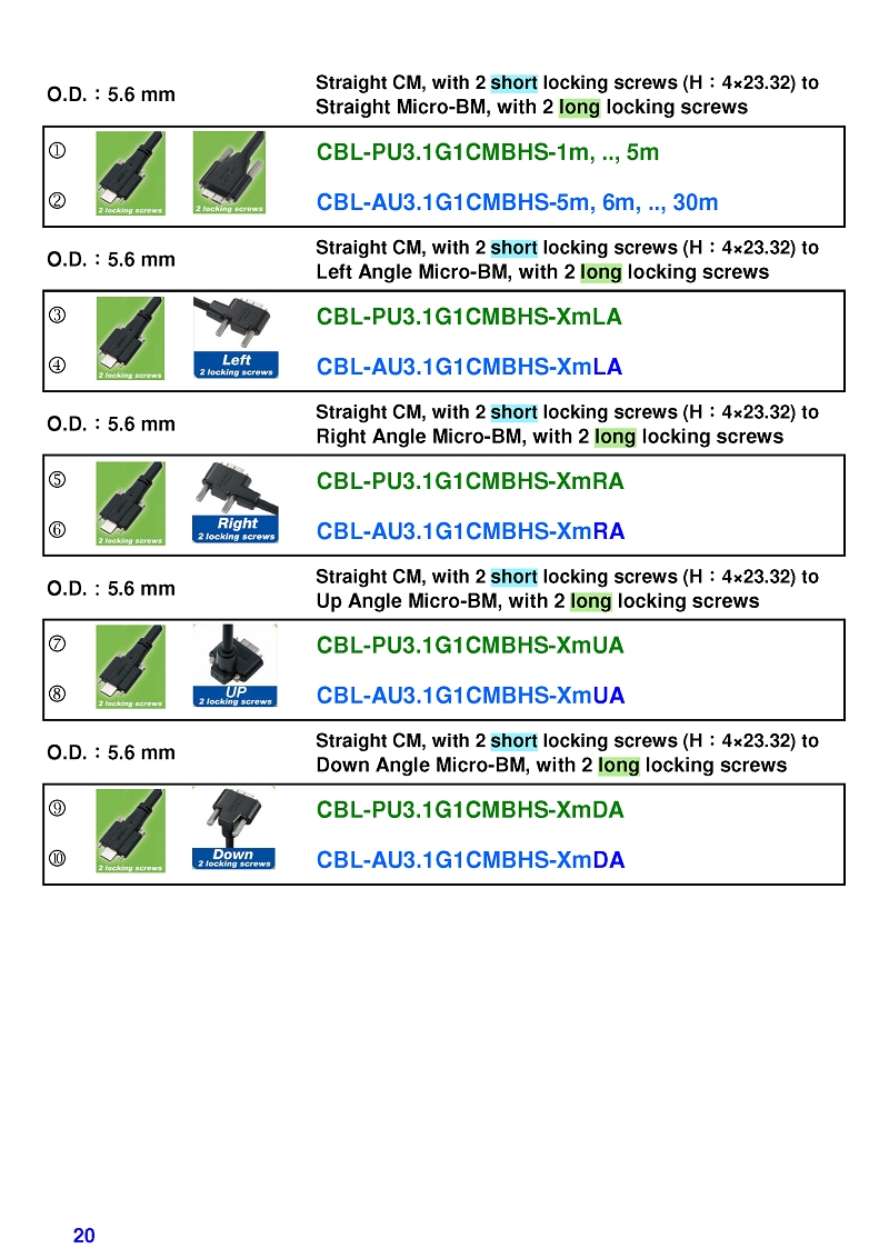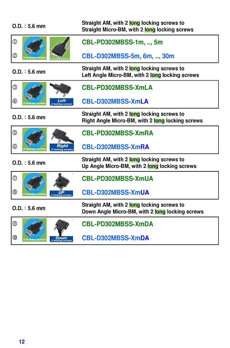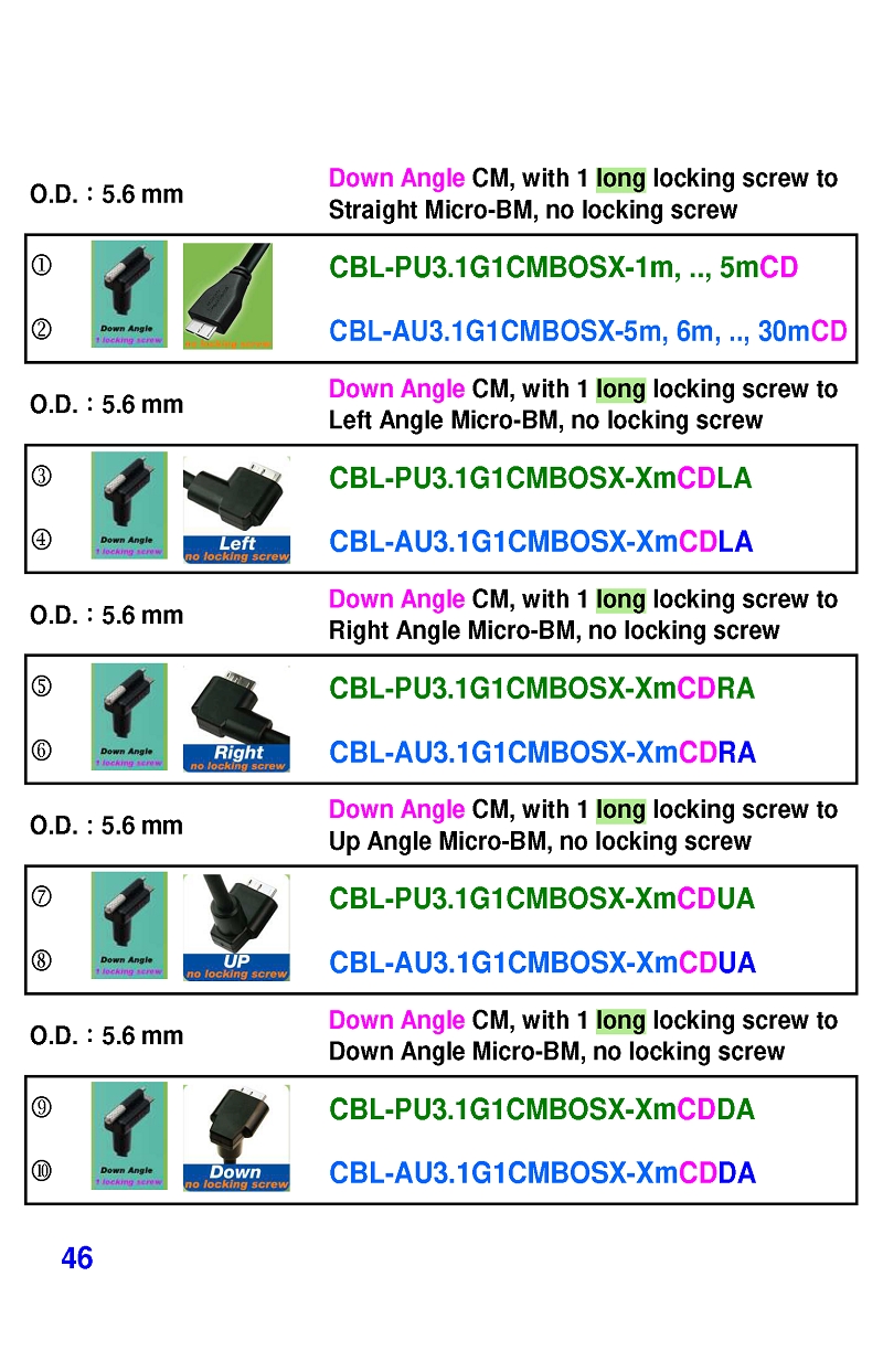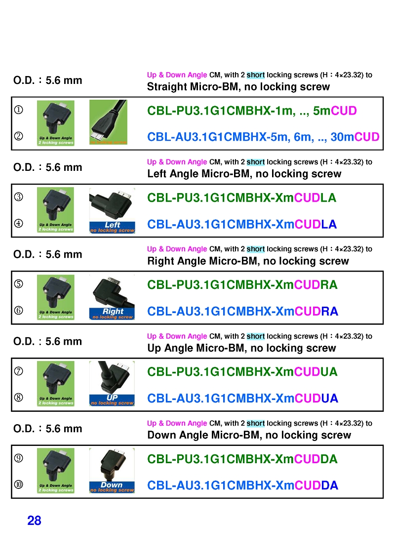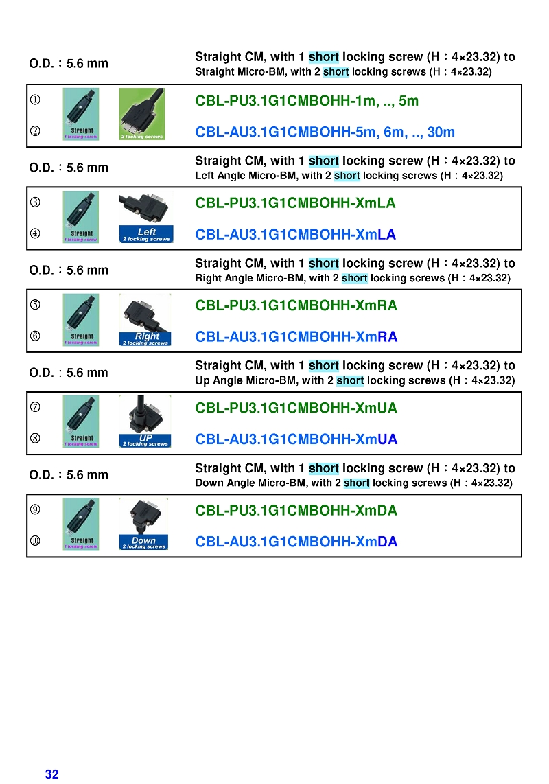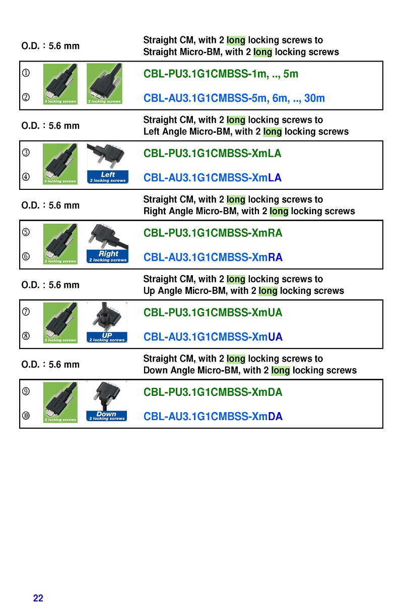 USB3 Straight A to Angled Micro-B or B Machine Vision Camera Cables-M/M