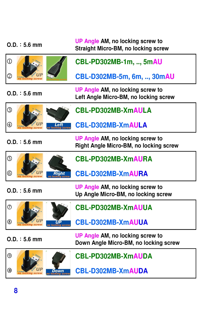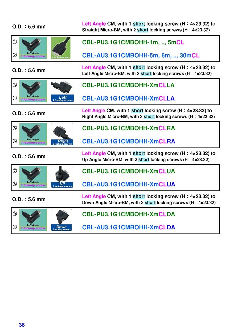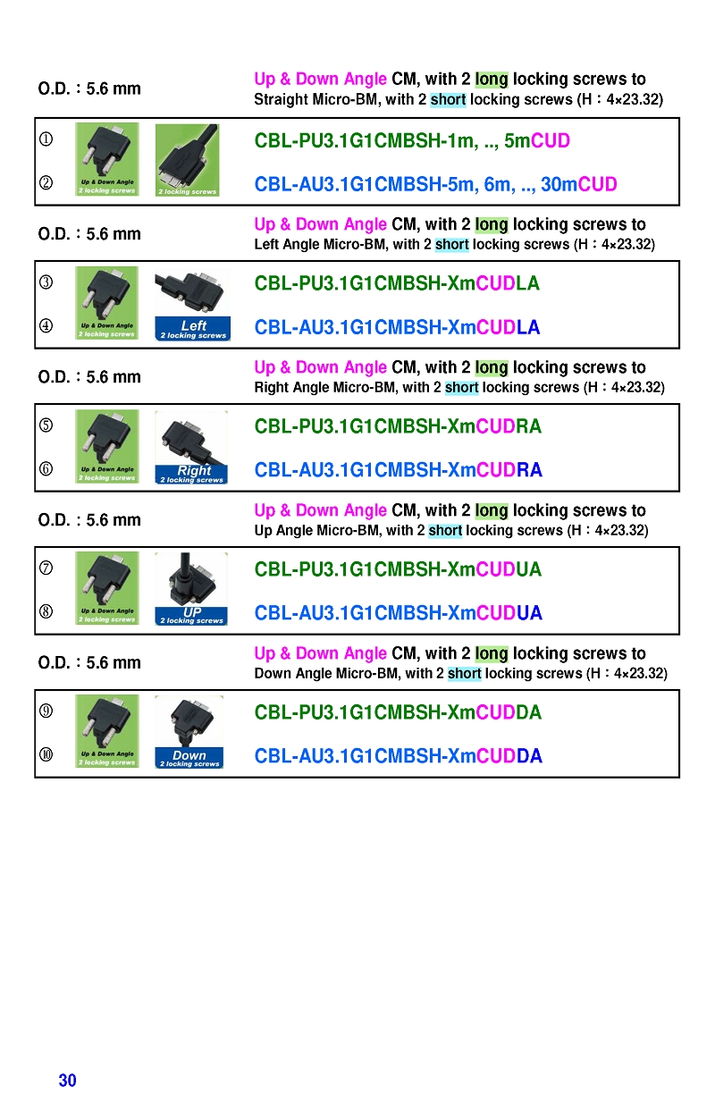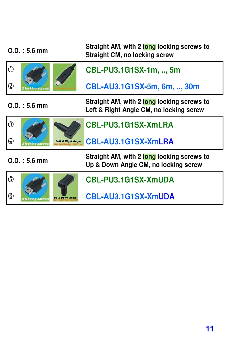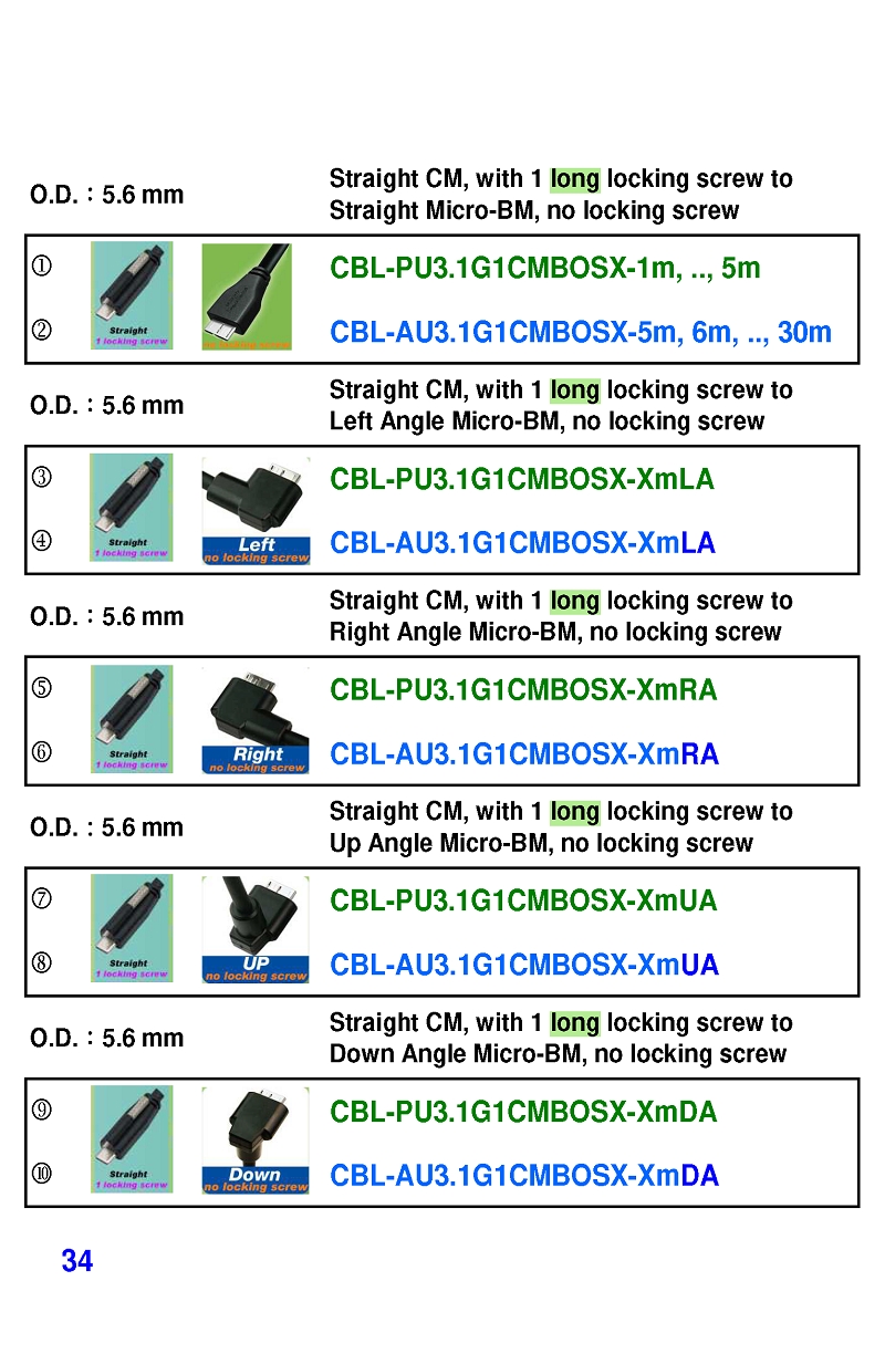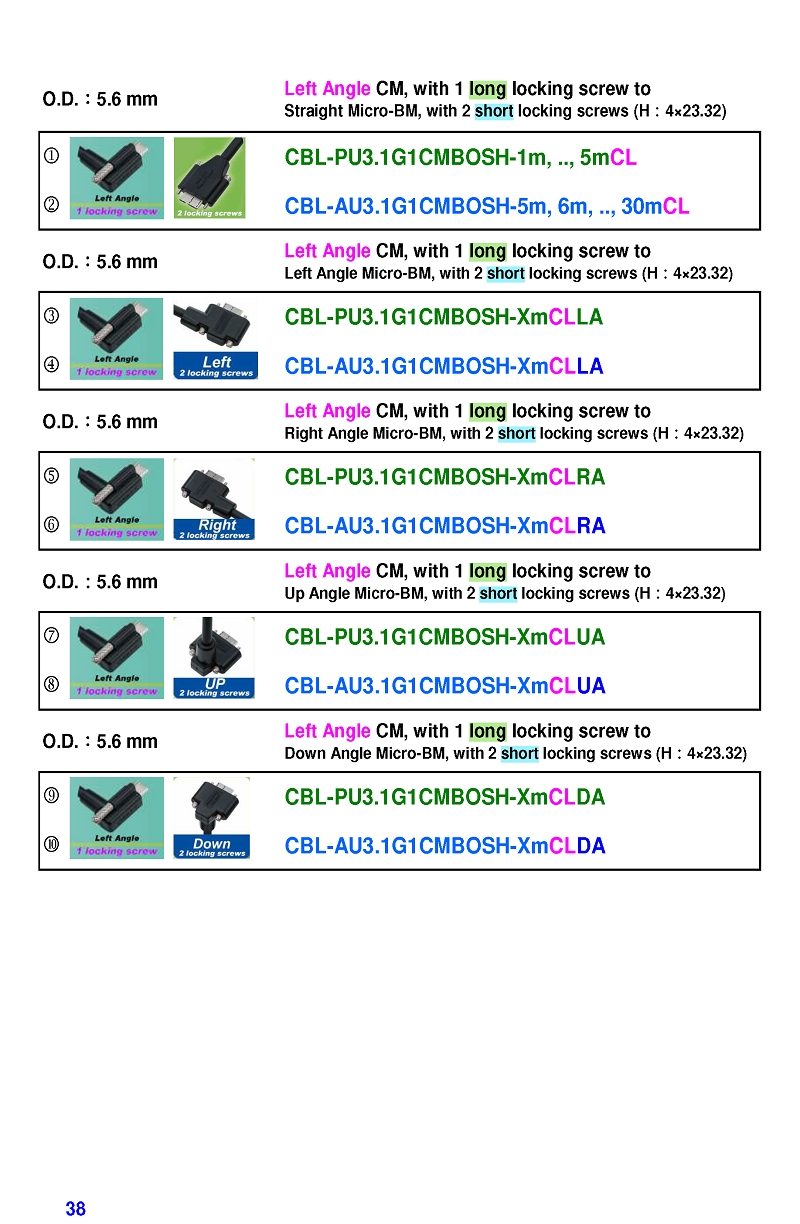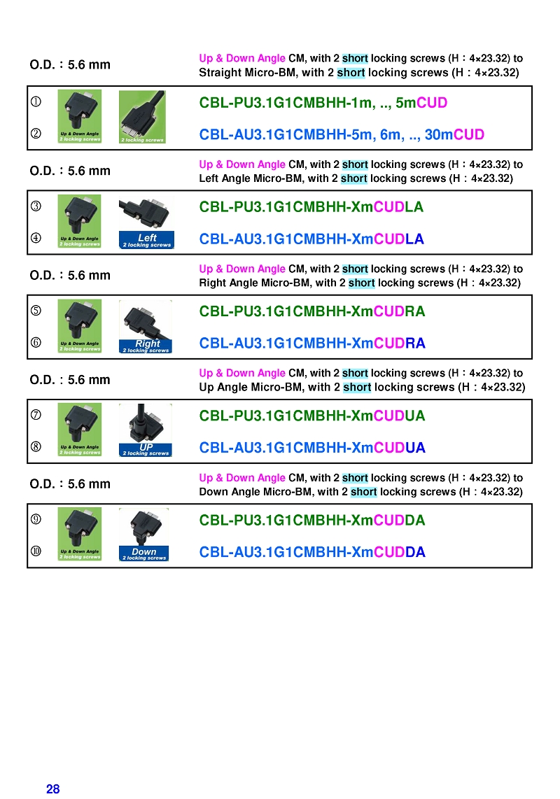 USB3 Straight A to Angled Micro-B or B Machine Vision Camera Cables-M/M
