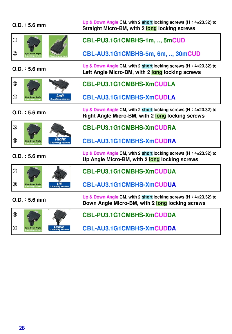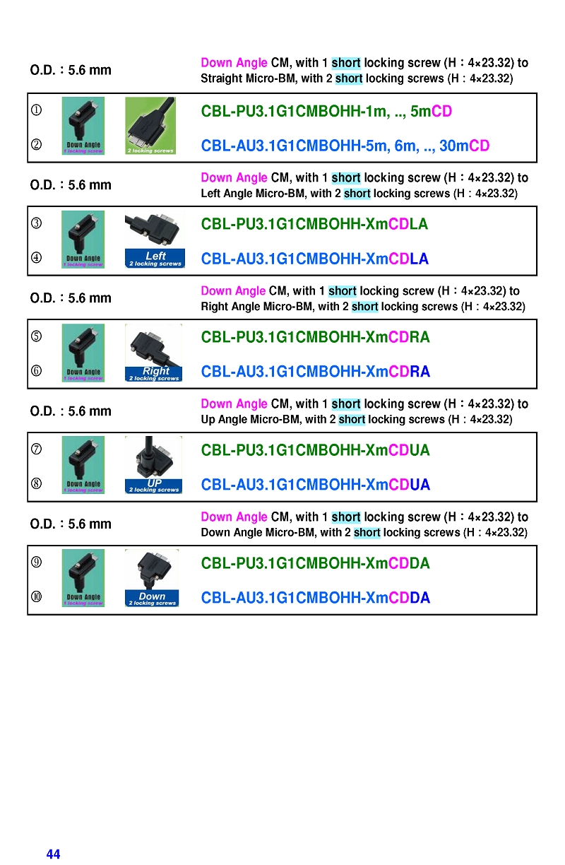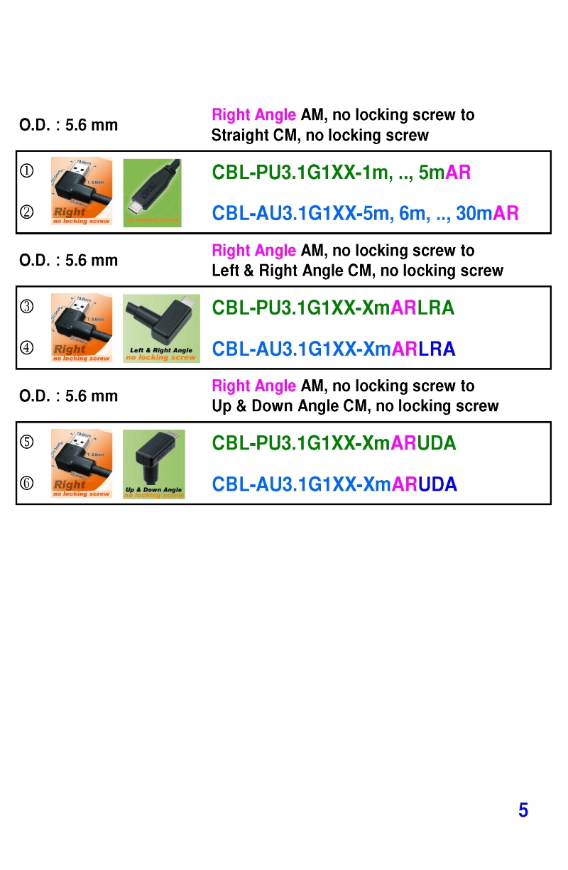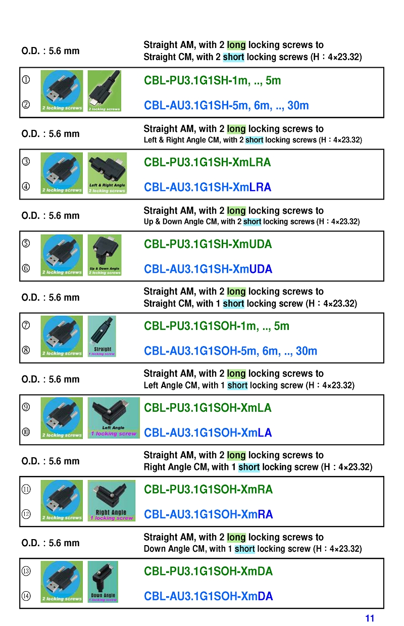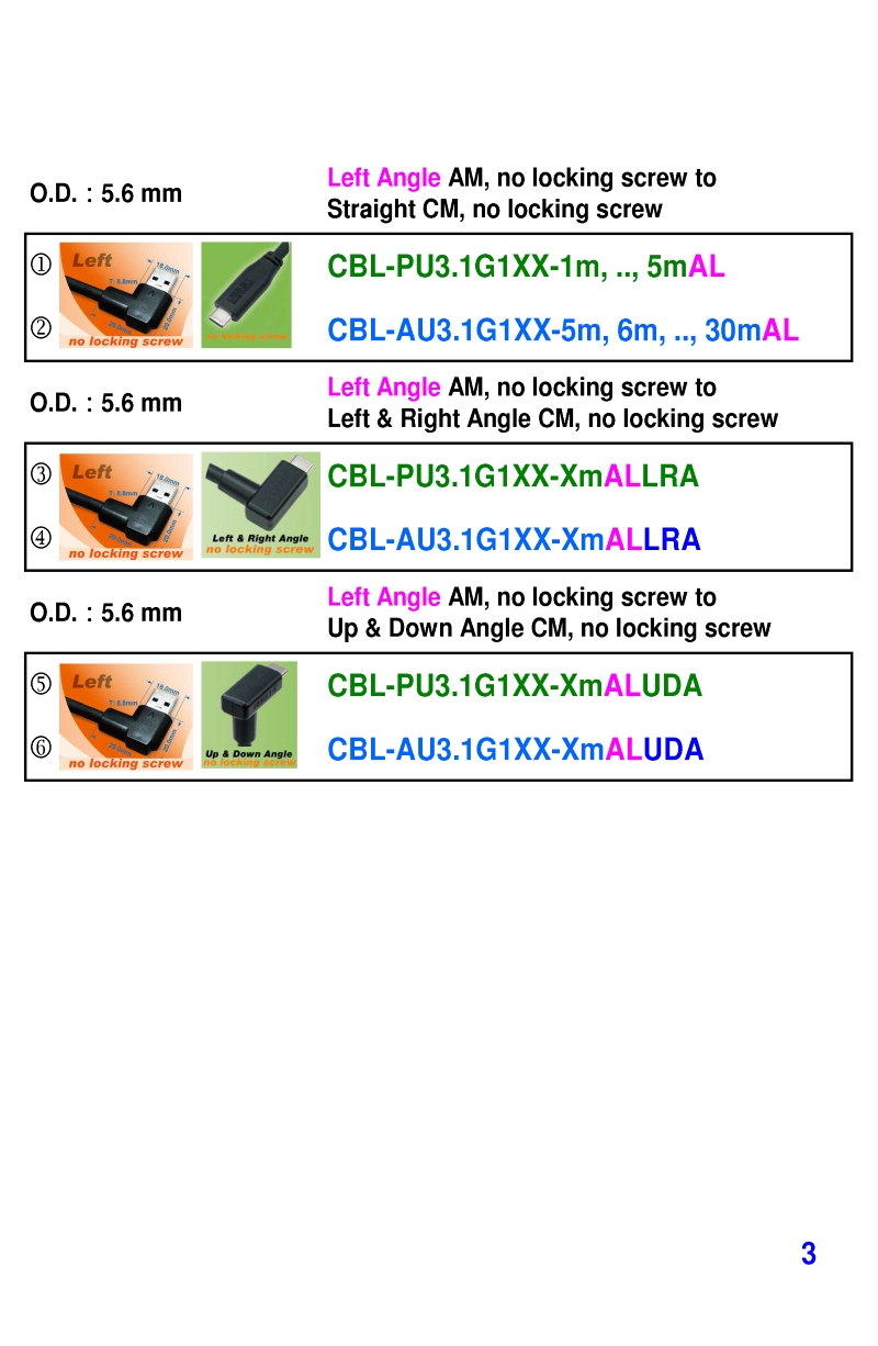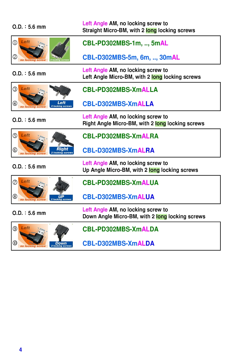 USB3 Straight A to Angled Micro-B or B Machine Vision Camera Cables-M/M