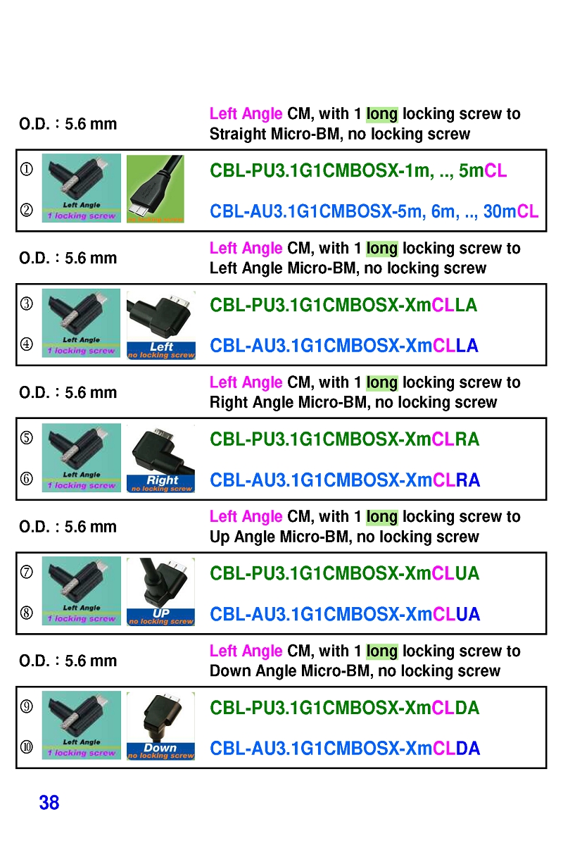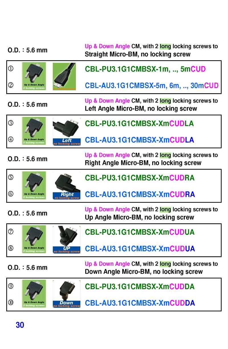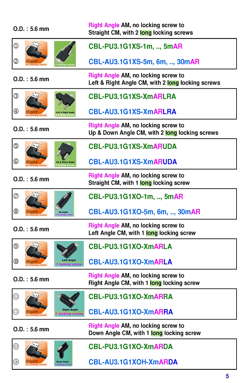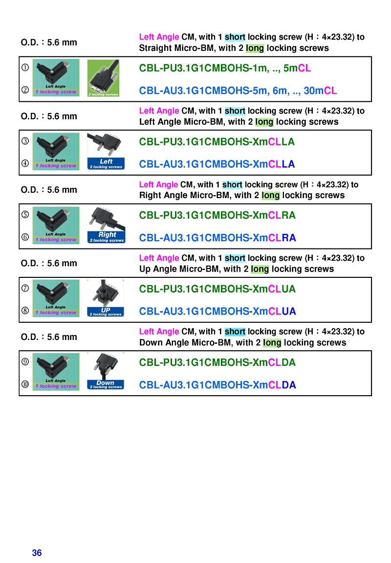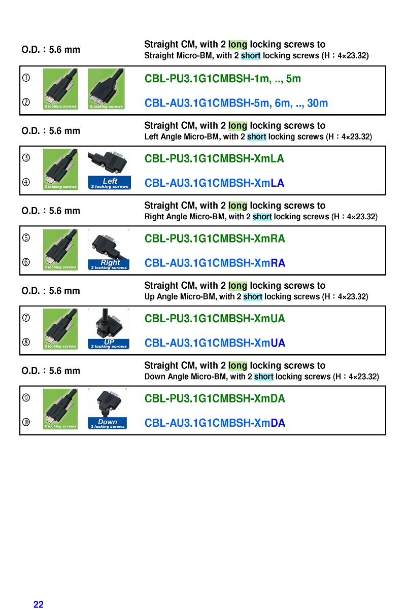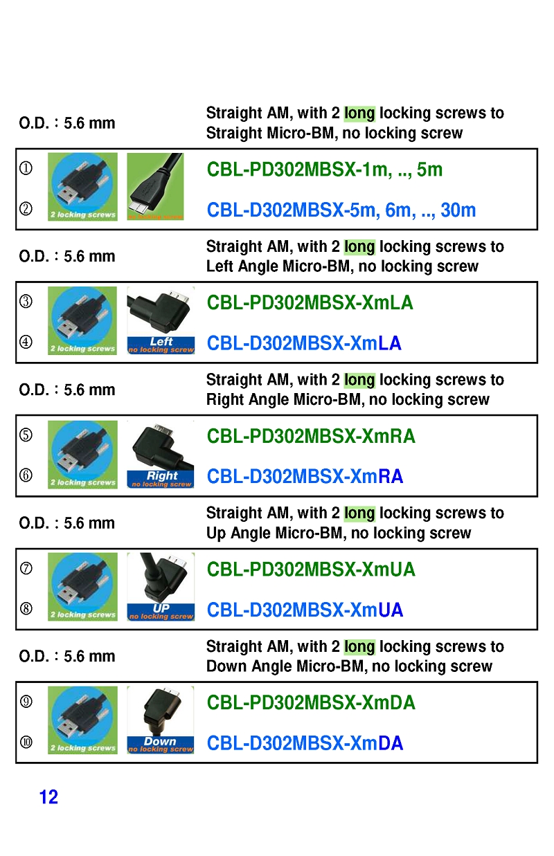 USB3 Straight A to Angled Micro-B or B Machine Vision Camera Cables-M/M