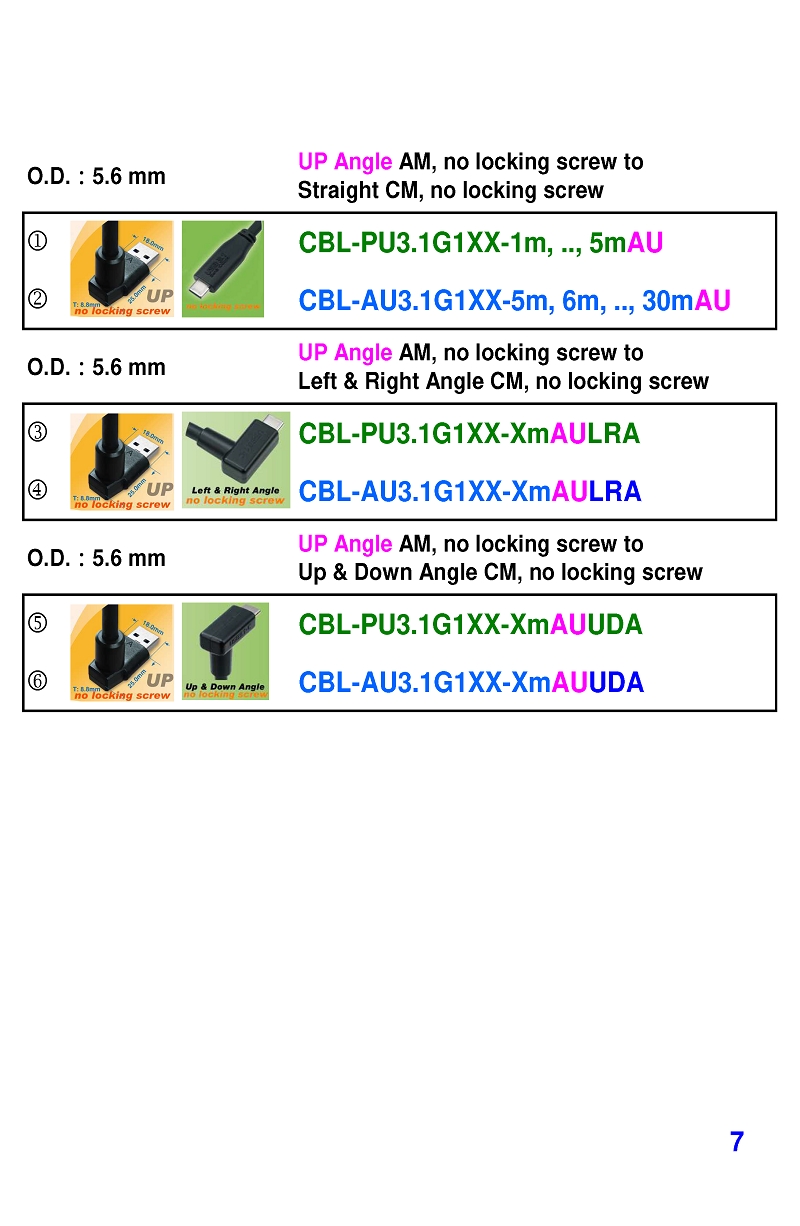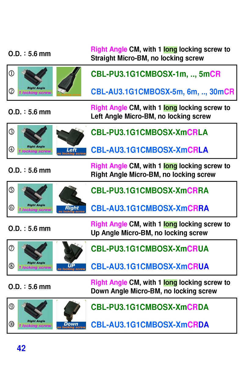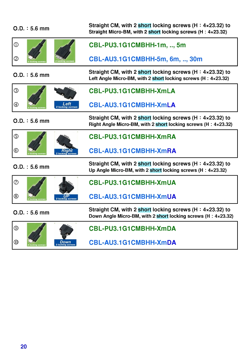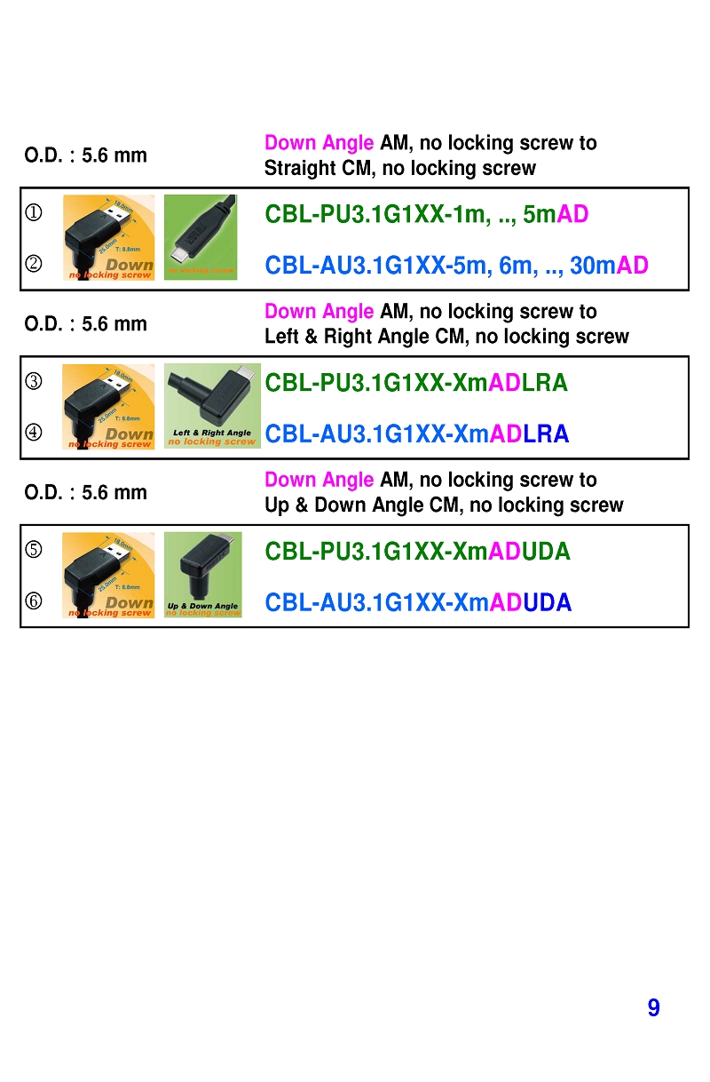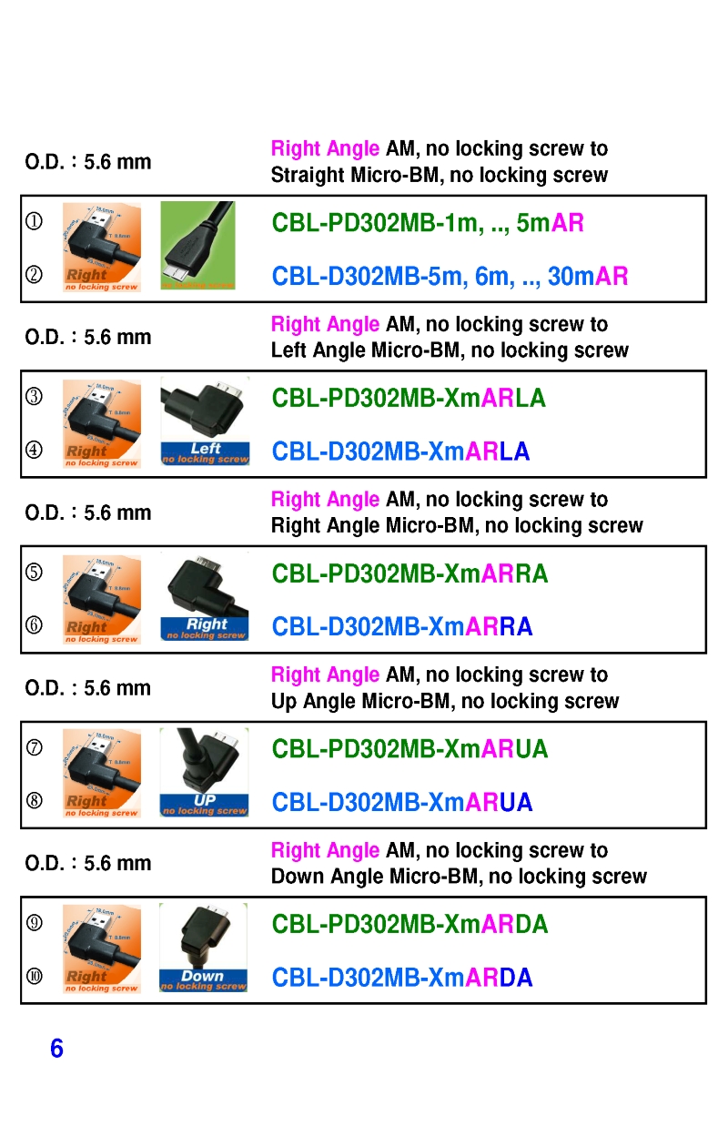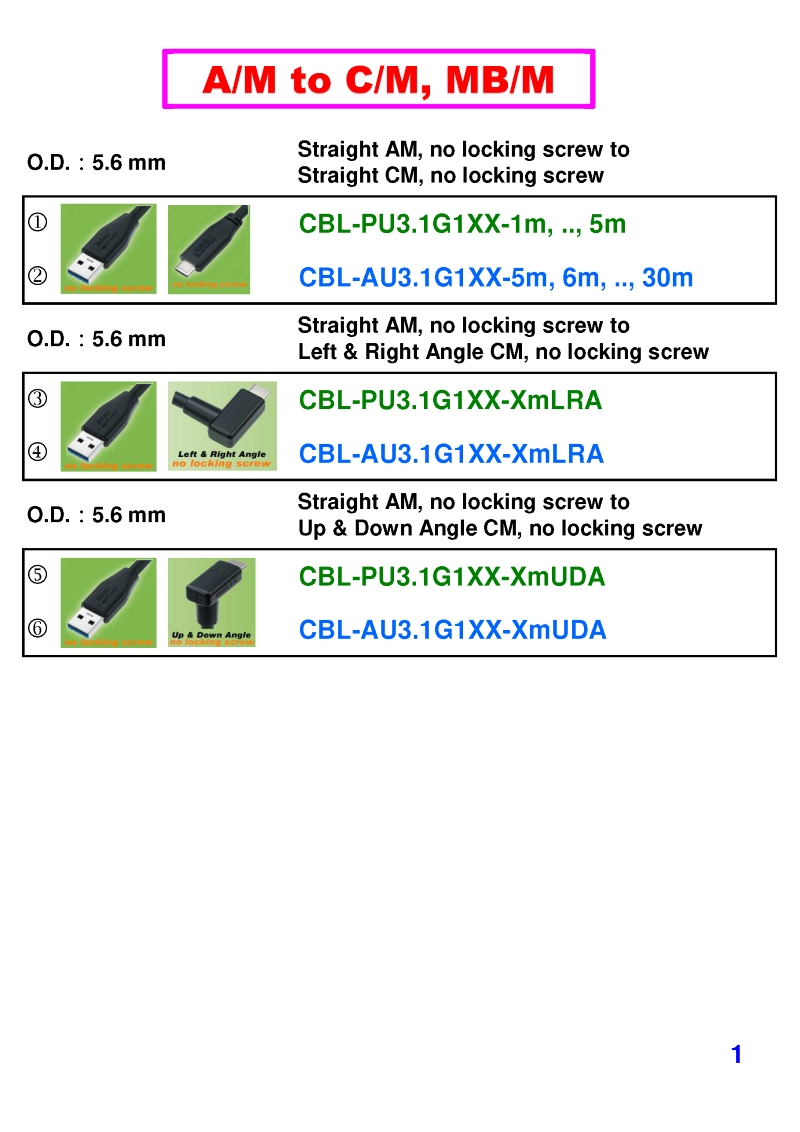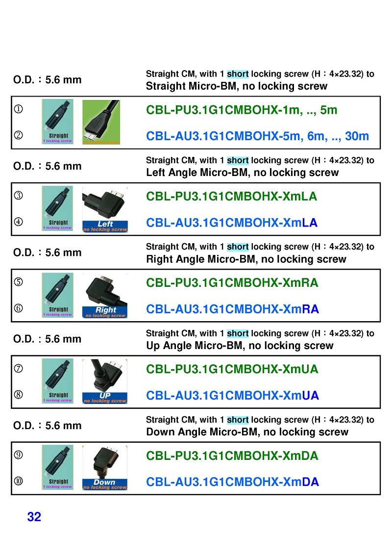 USB3 Straight A to Angled Micro-B or B Machine Vision Camera Cables-M/M