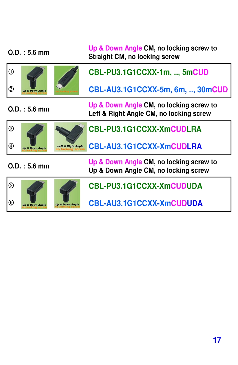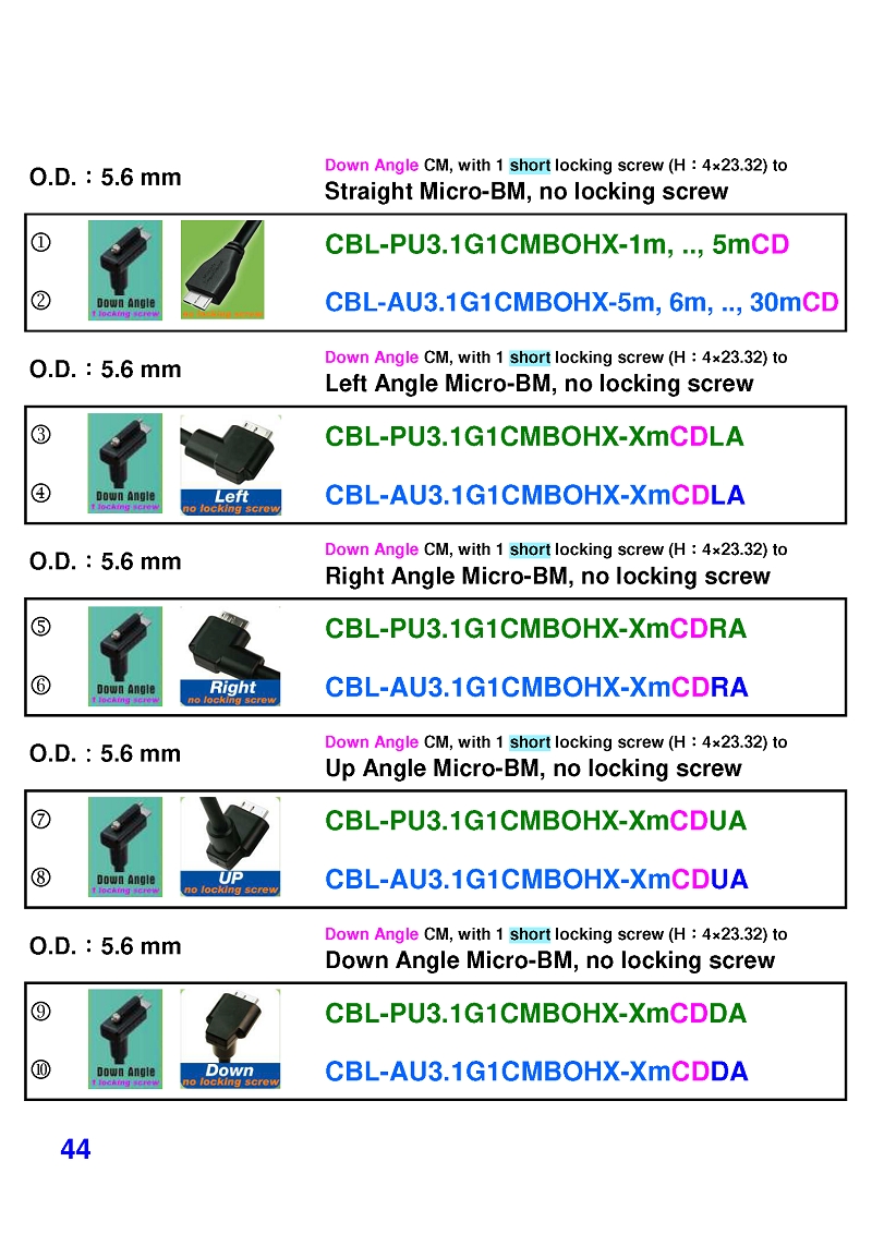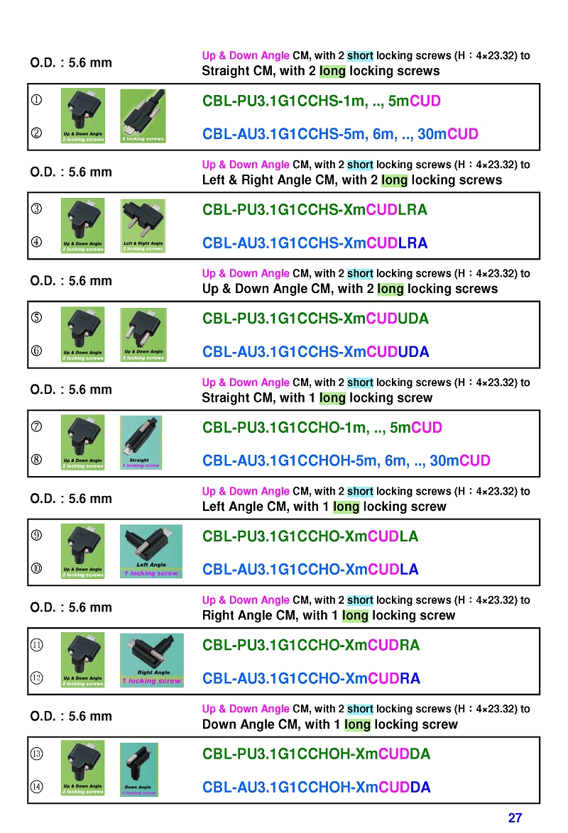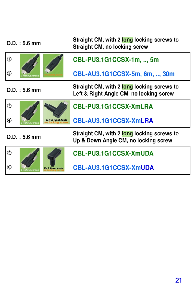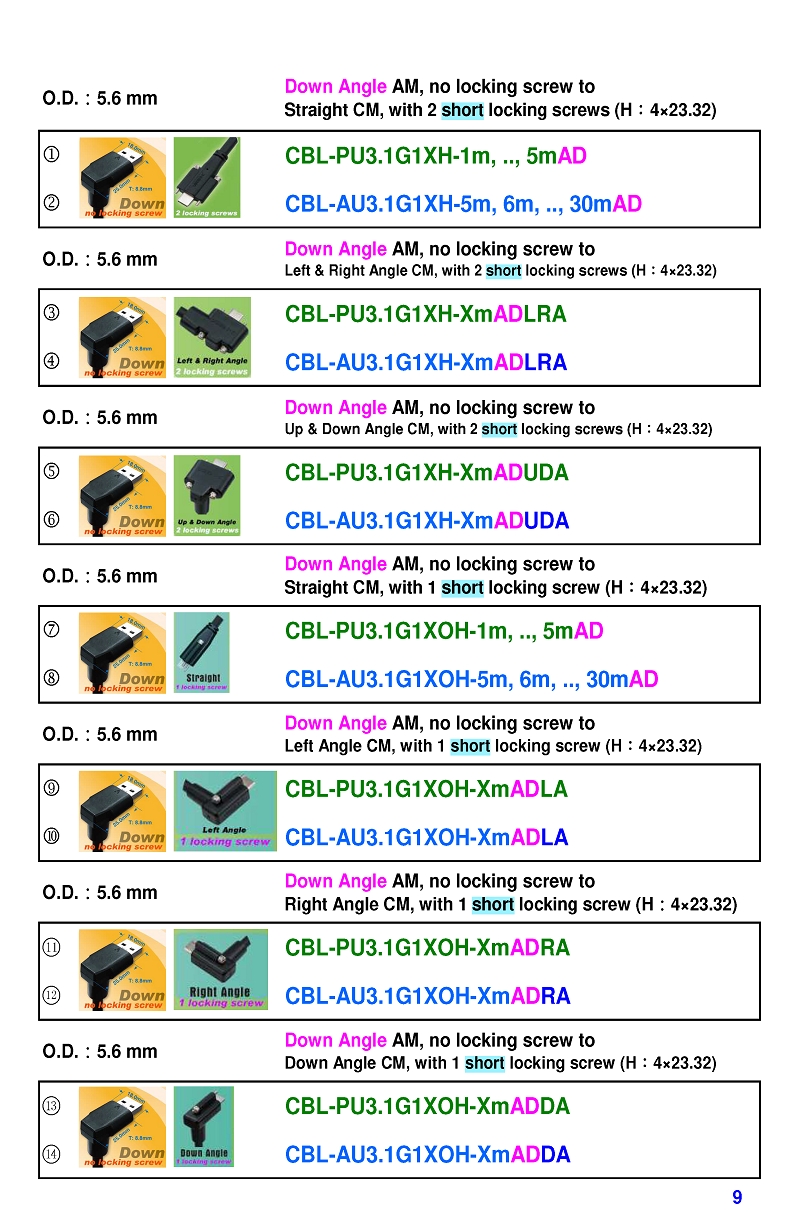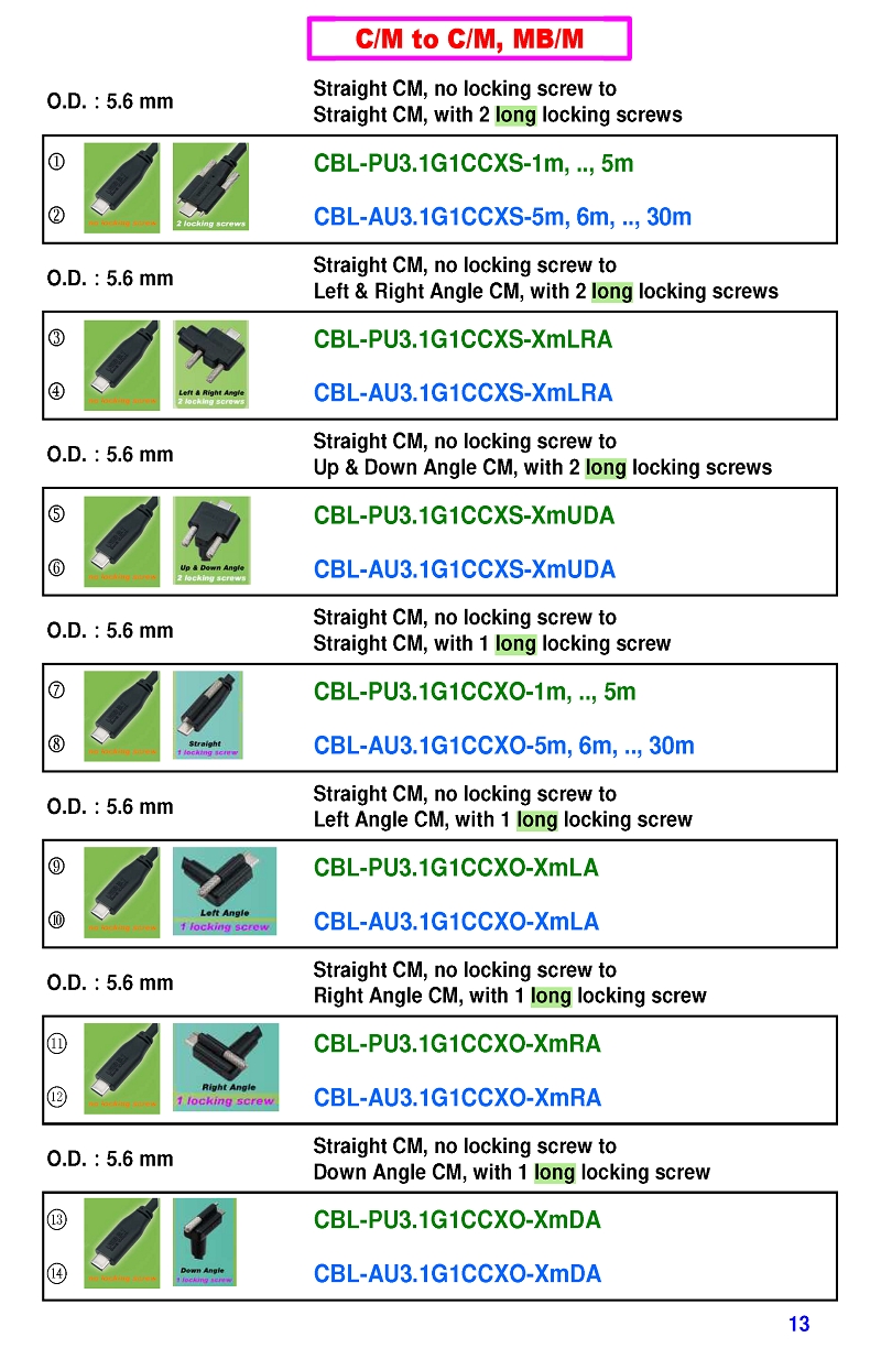 USB3 Straight A to Angled Micro-B or B Machine Vision Camera Cables-M/M