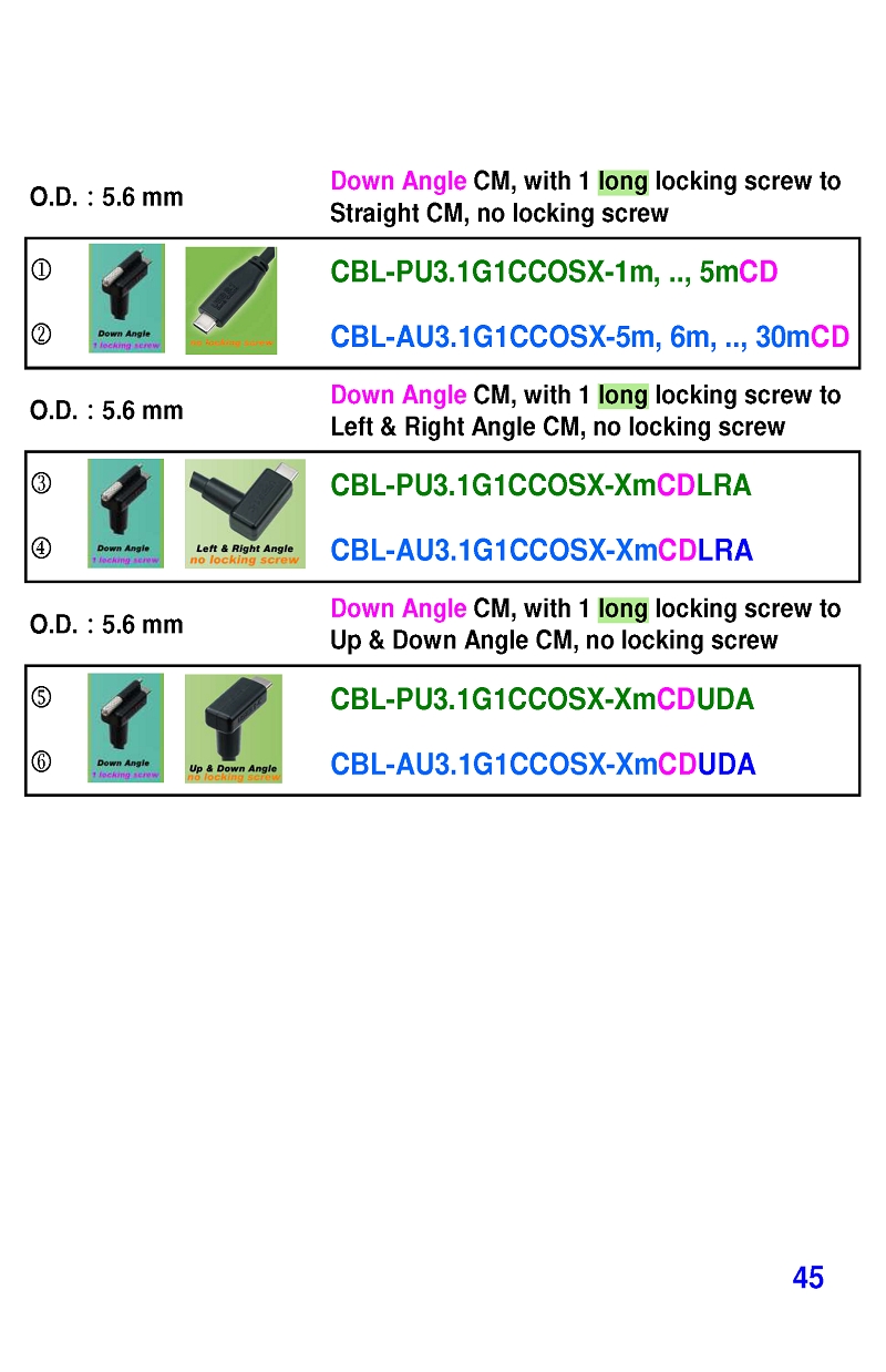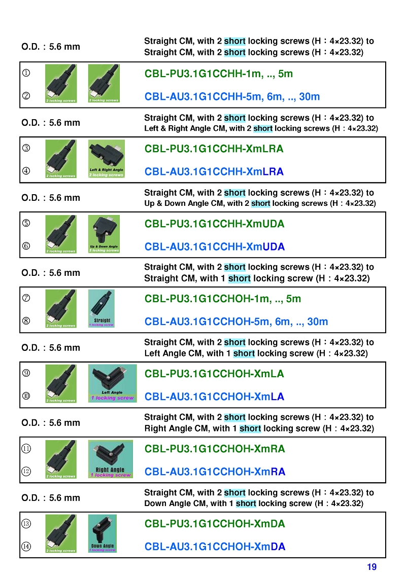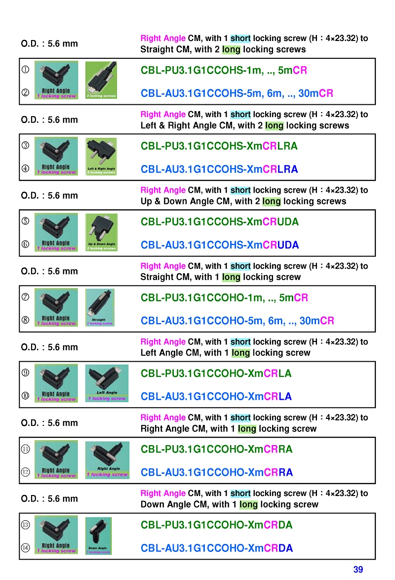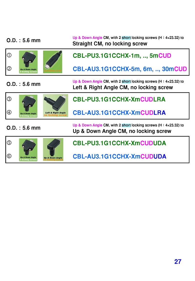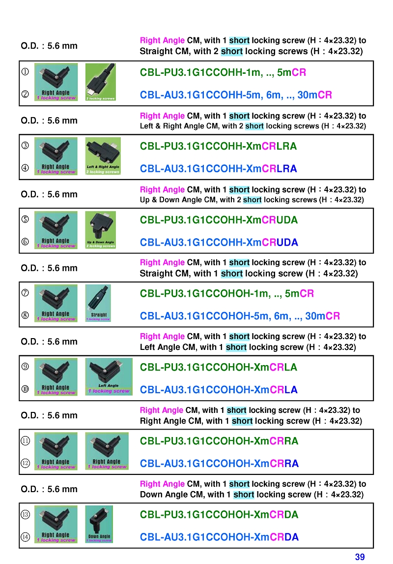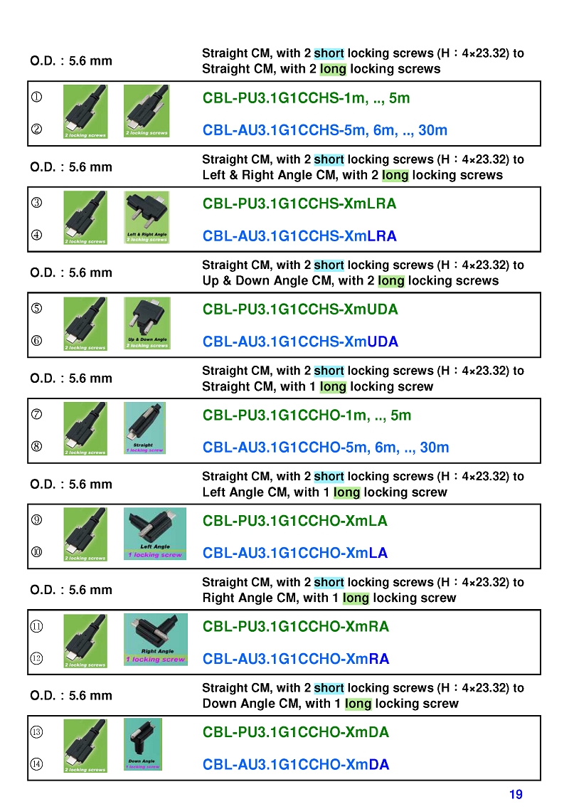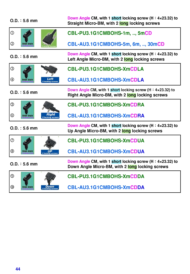 USB3 Straight A to Angled Micro-B or B Machine Vision Camera Cables-M/M