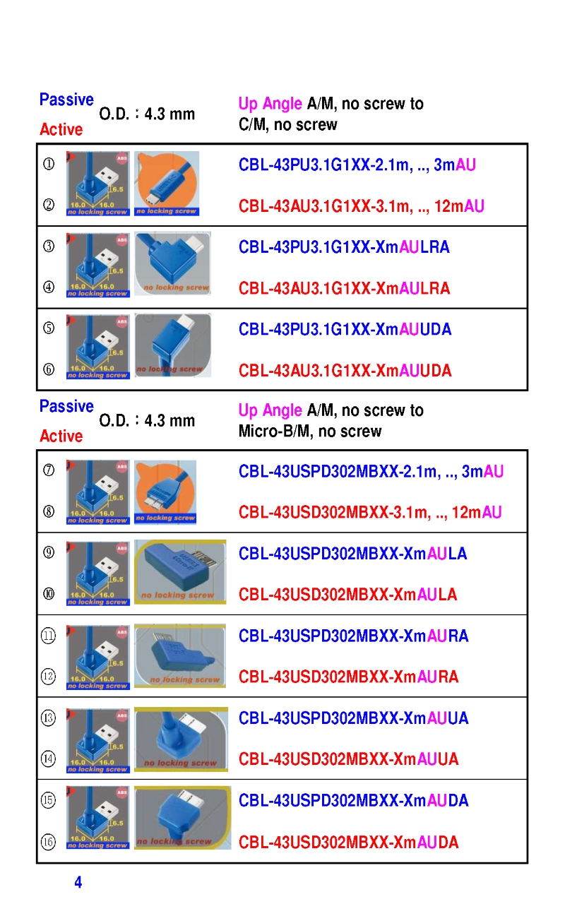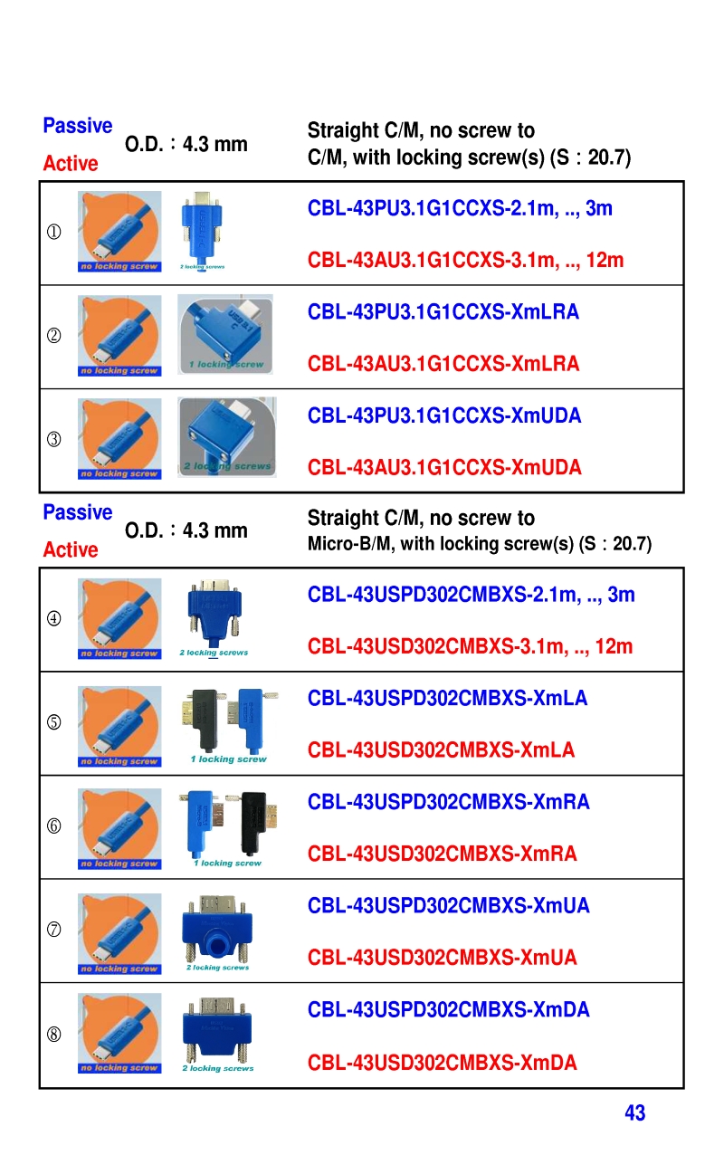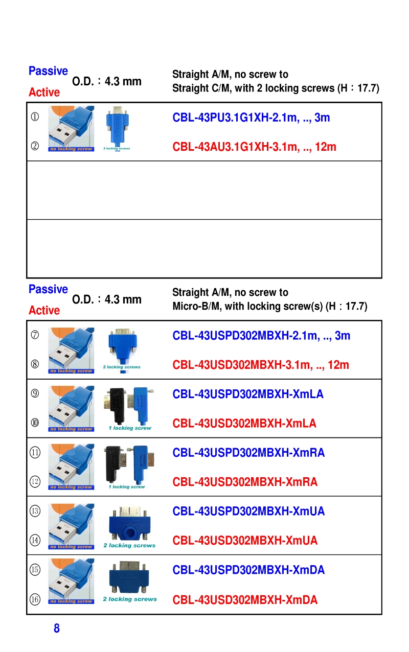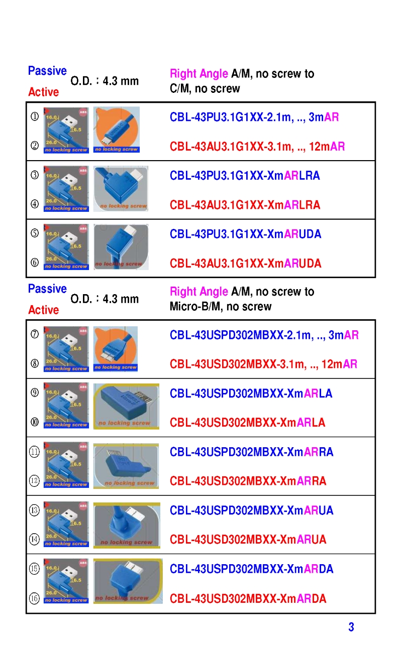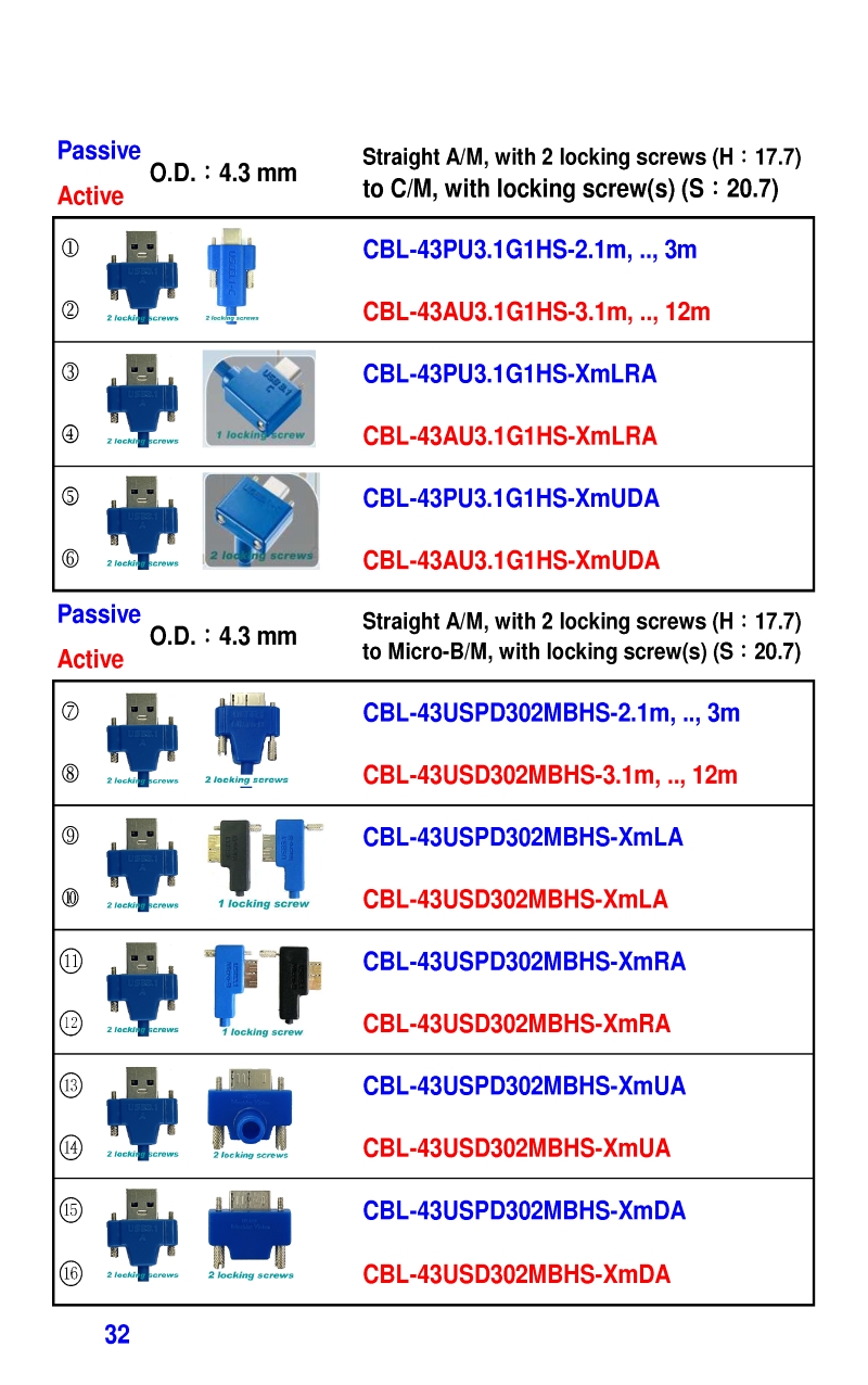 3.2mm Ultra Slim USB3 Cables 4.3mm Ultra Slim USB3 Cables
