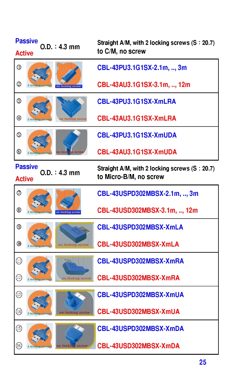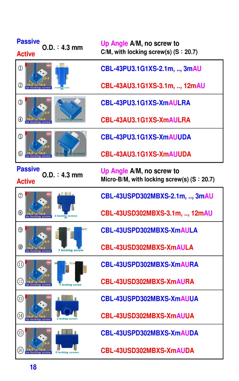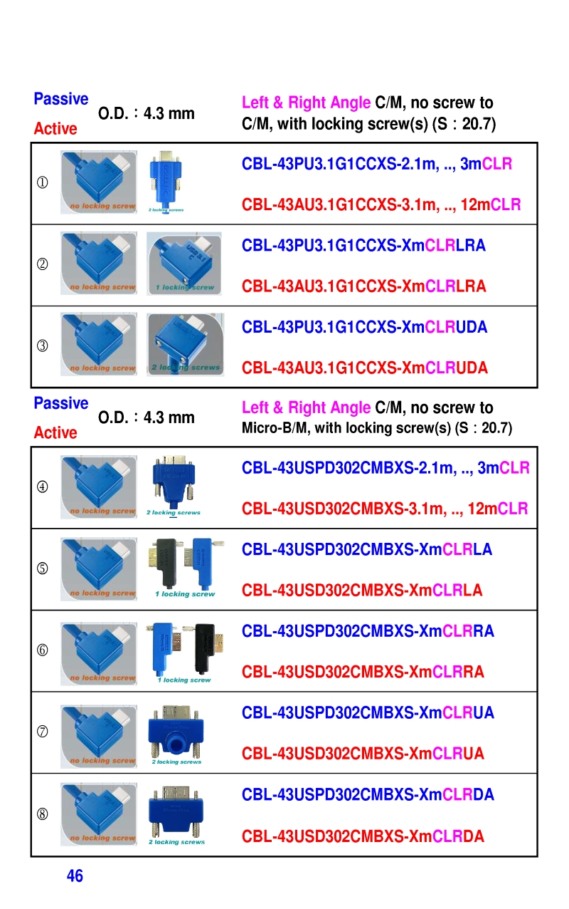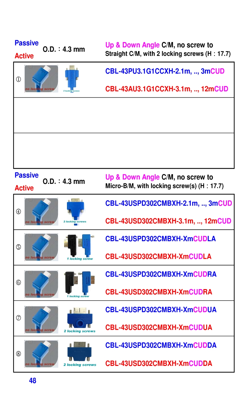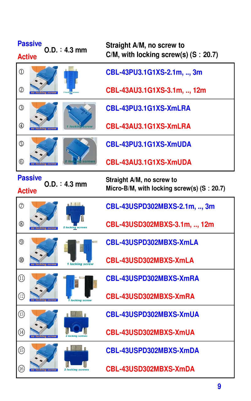 3.2mm Ultra Slim USB3 Cables 4.3mm Ultra Slim USB3 Cables