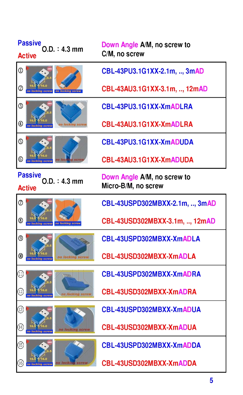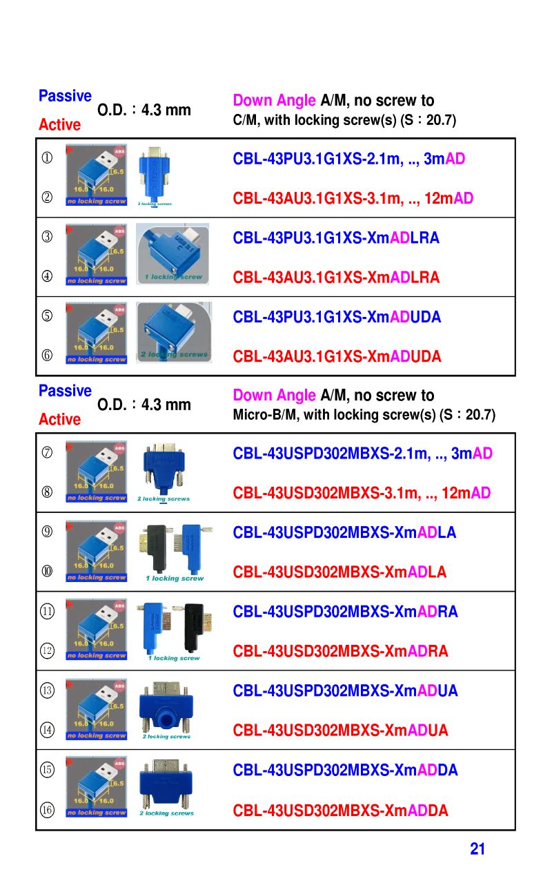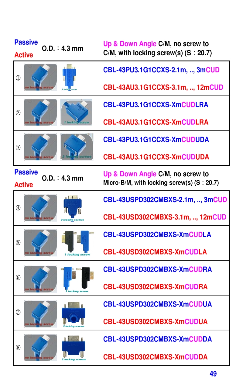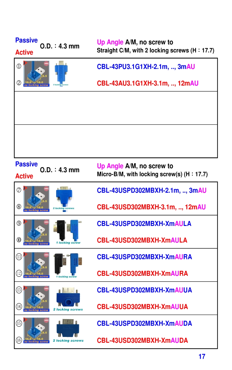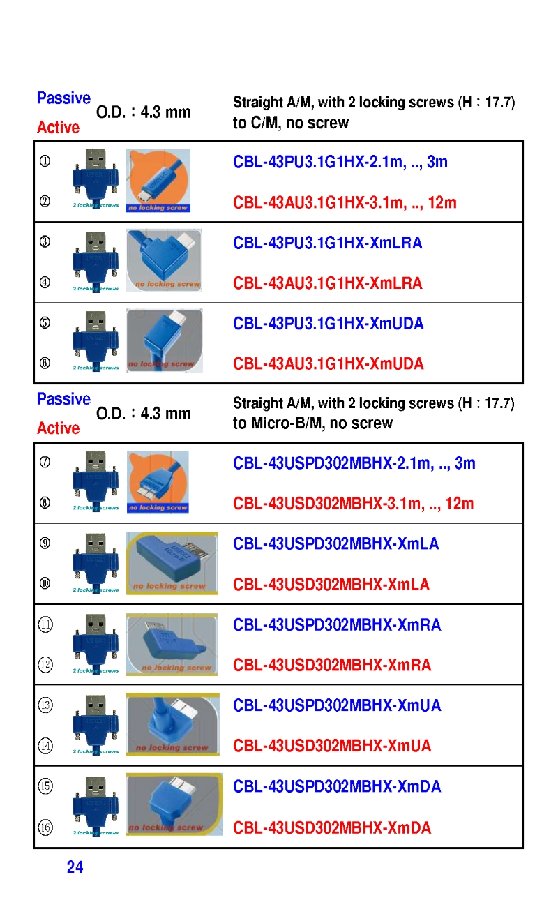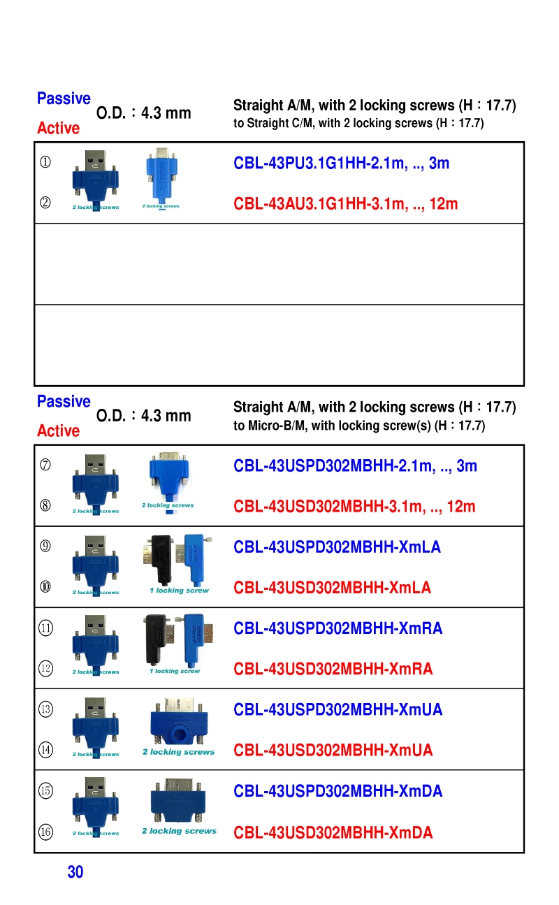 3.2mm Ultra Slim USB3 Cables 4.3mm Ultra Slim USB3 Cables