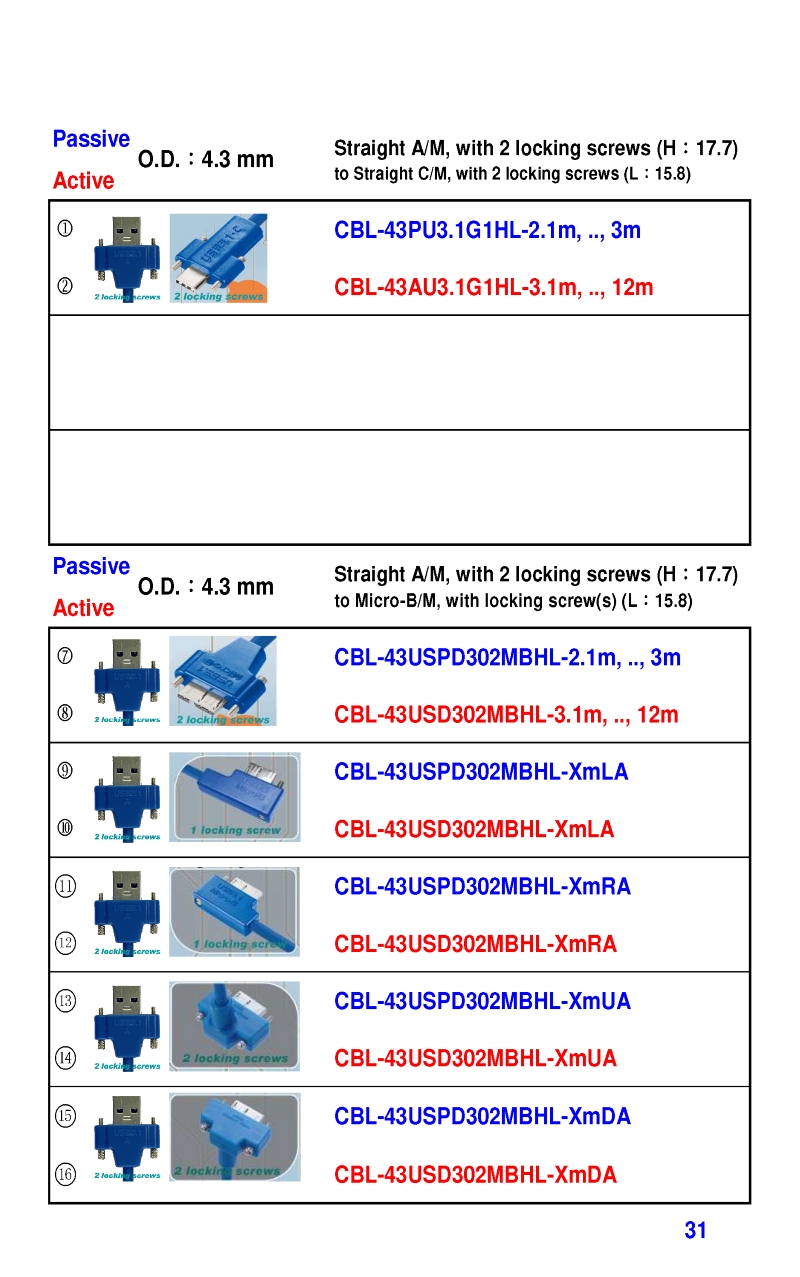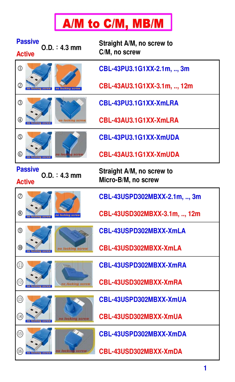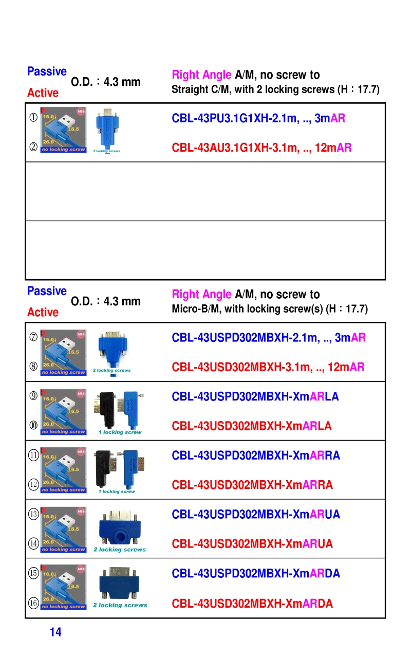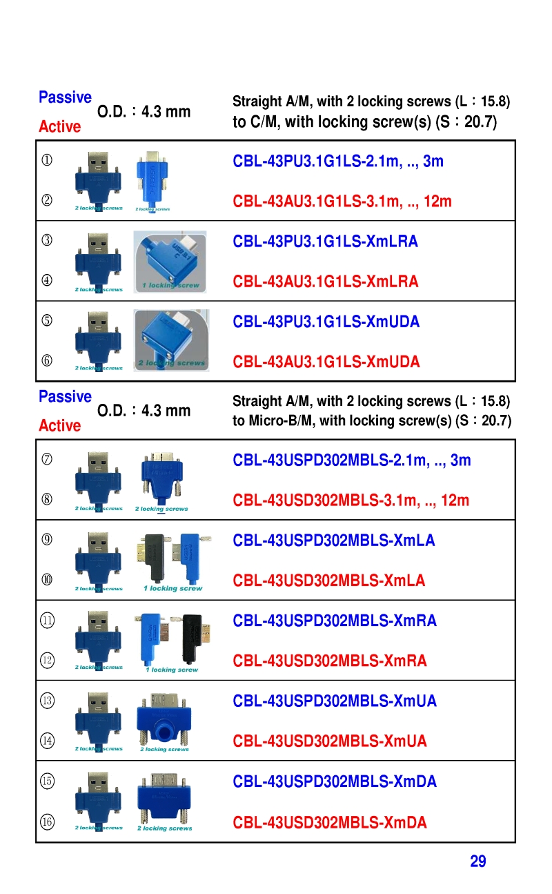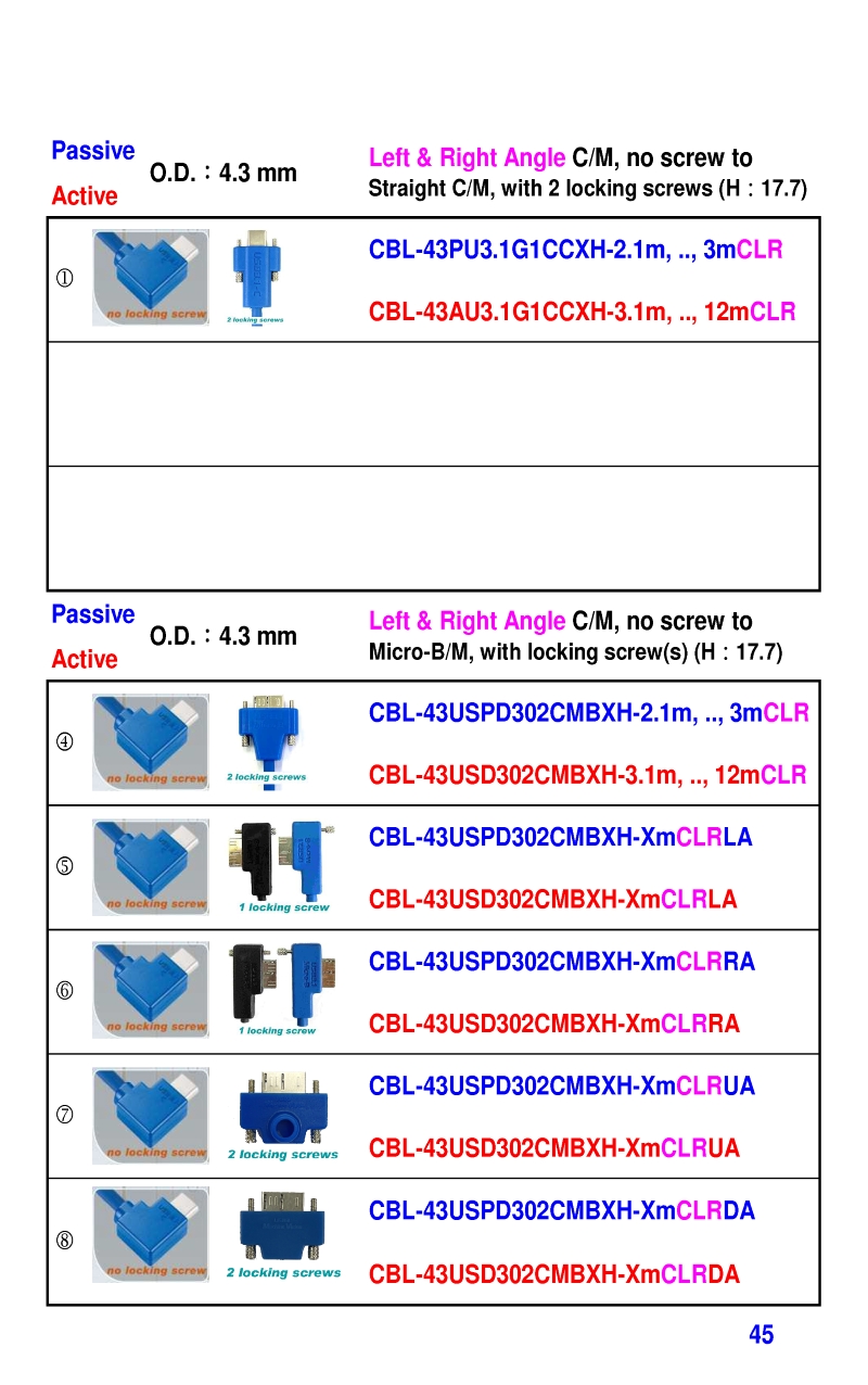 3.2mm Ultra Slim USB3 Cables 4.3mm Ultra Slim USB3 Cables