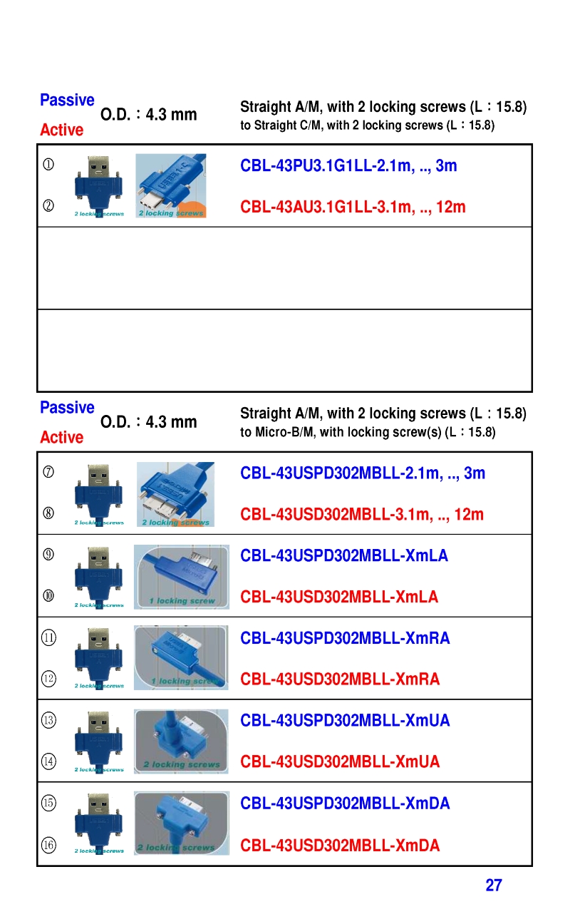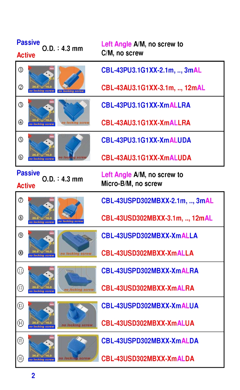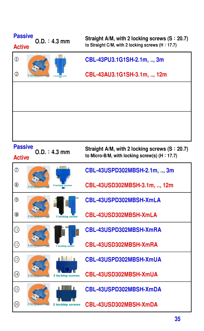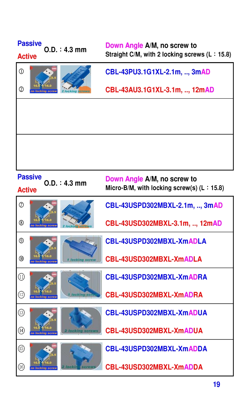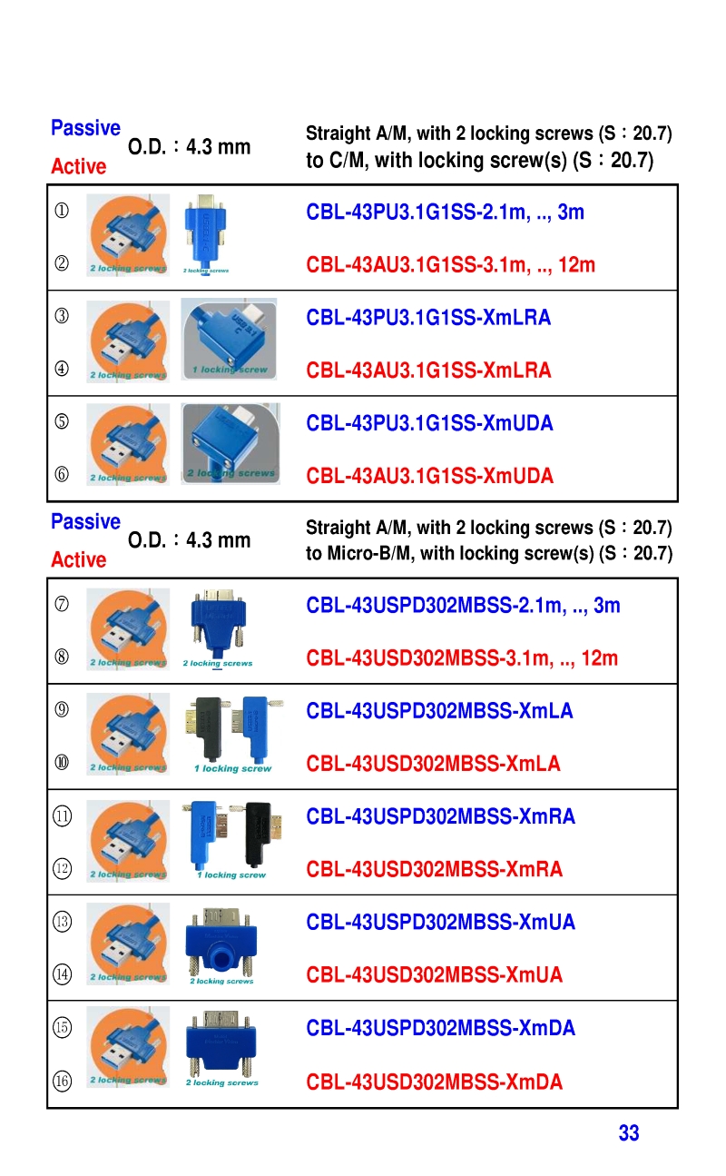 3.2mm Ultra Slim USB3 Cables 4.3mm Ultra Slim USB3 Cables
