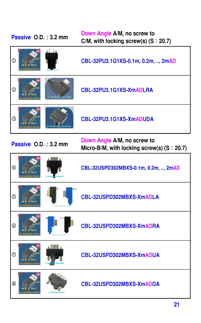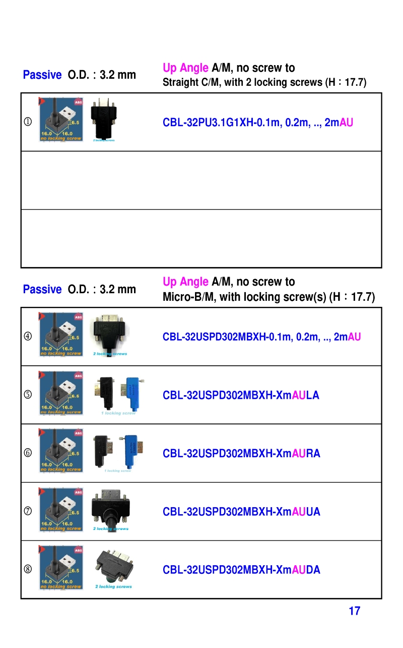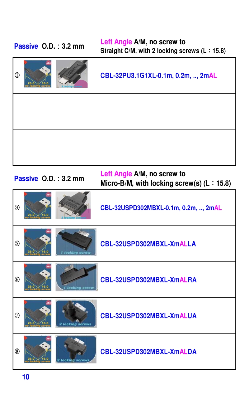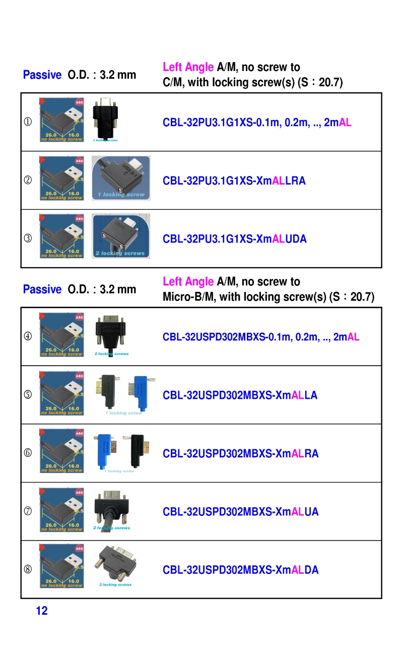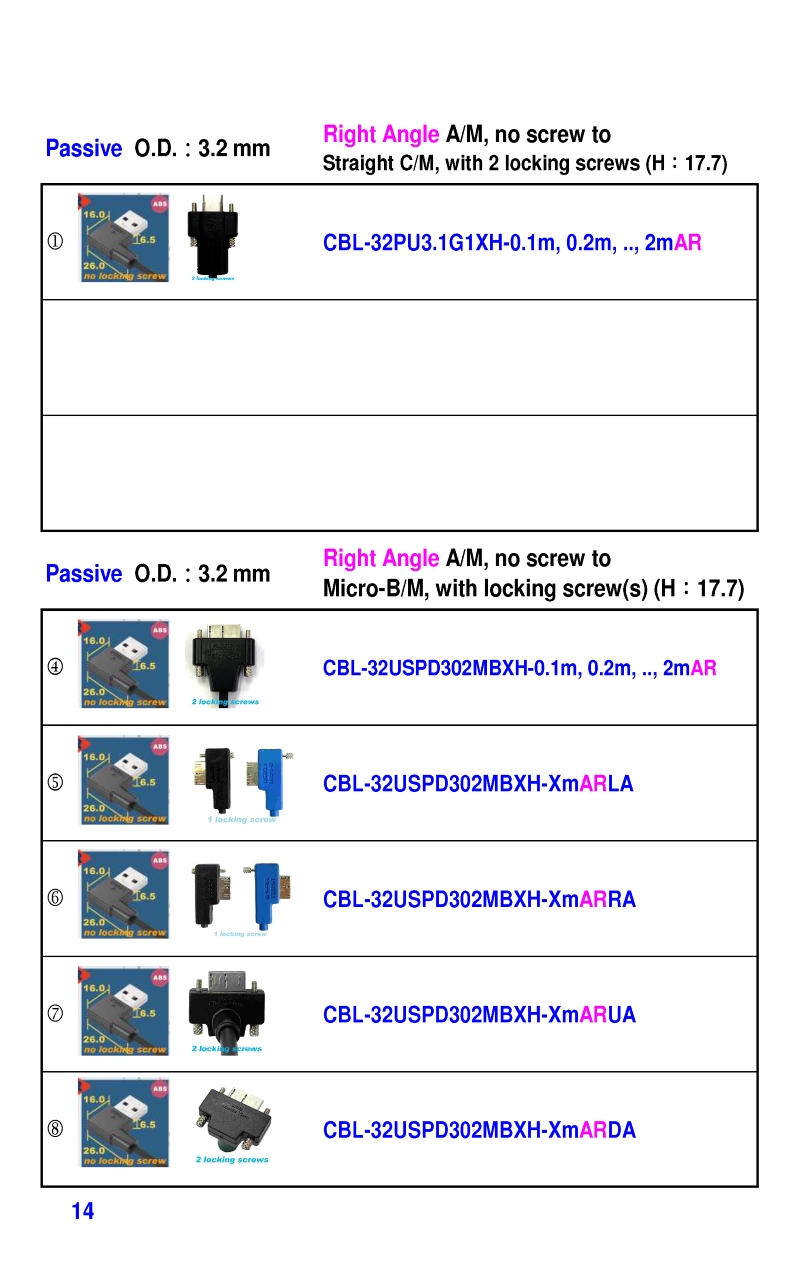 USB3 Straight A to Angled Micro-B or B Machine Vision Camera Cables-M/M