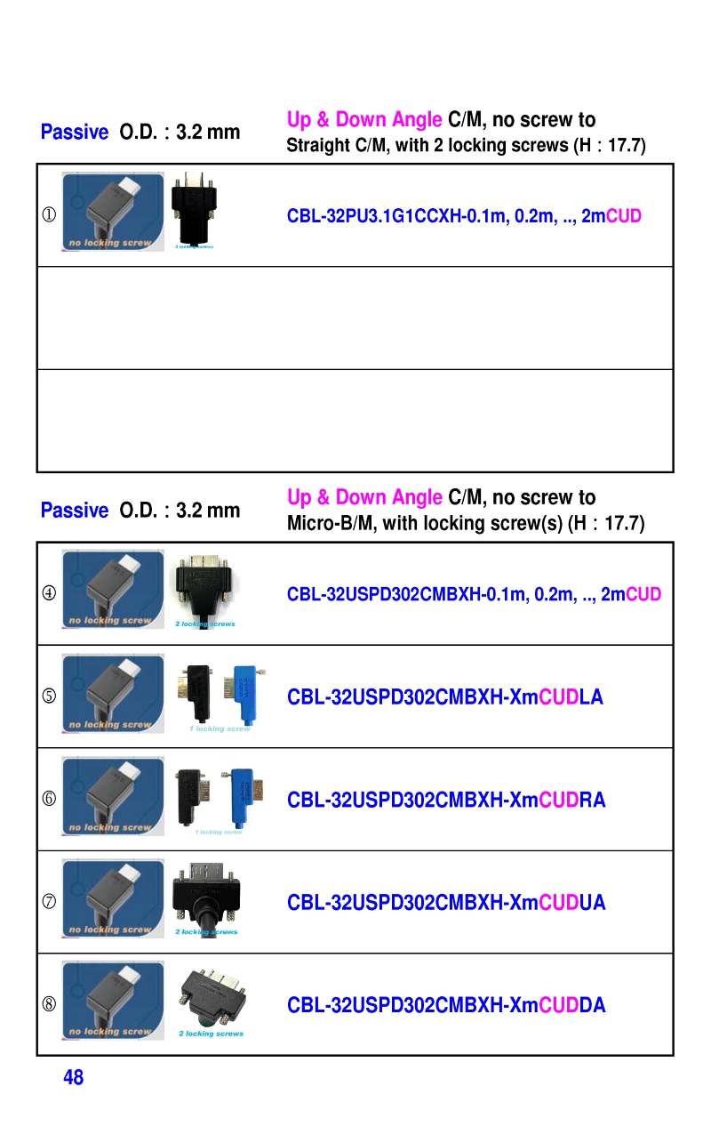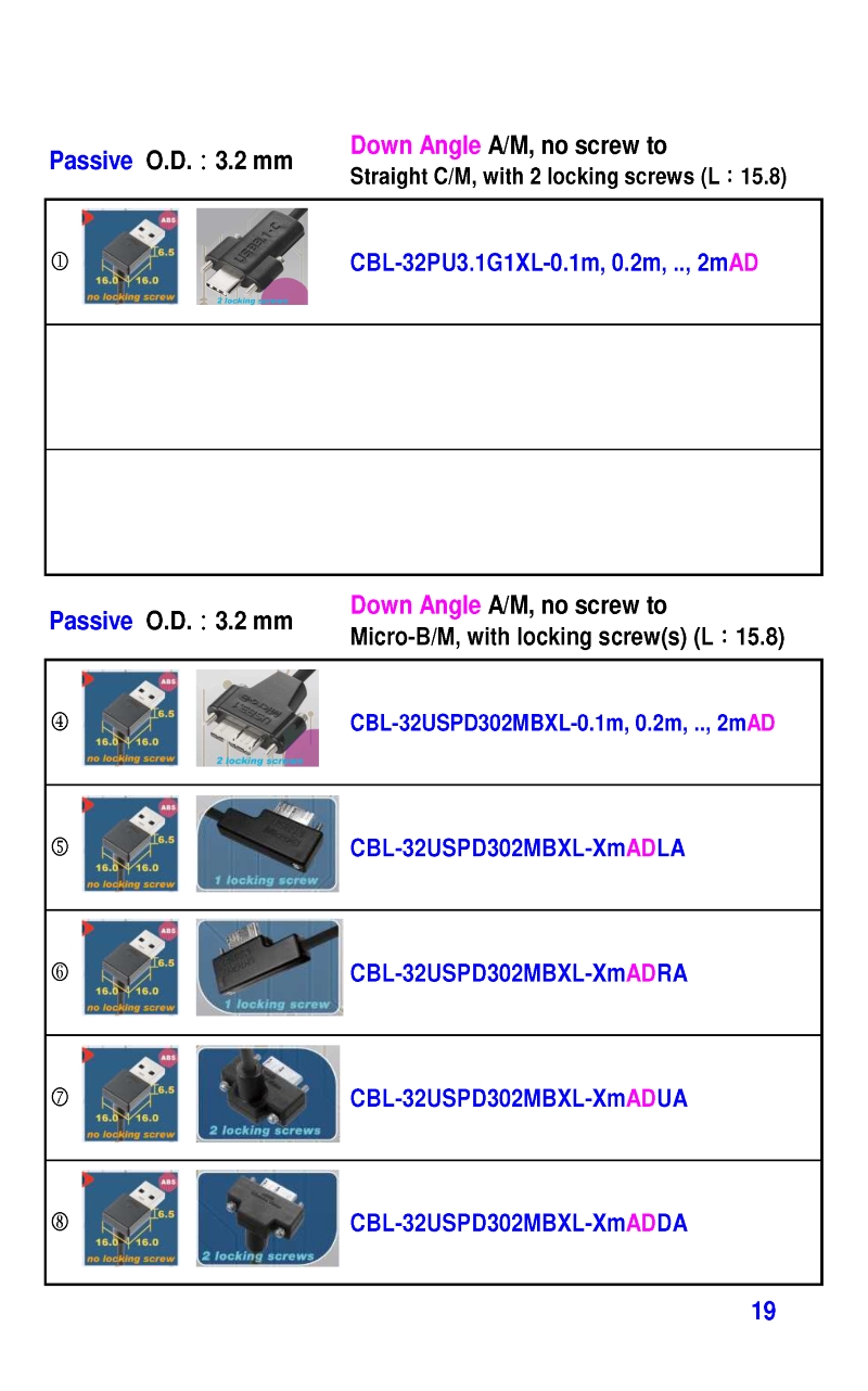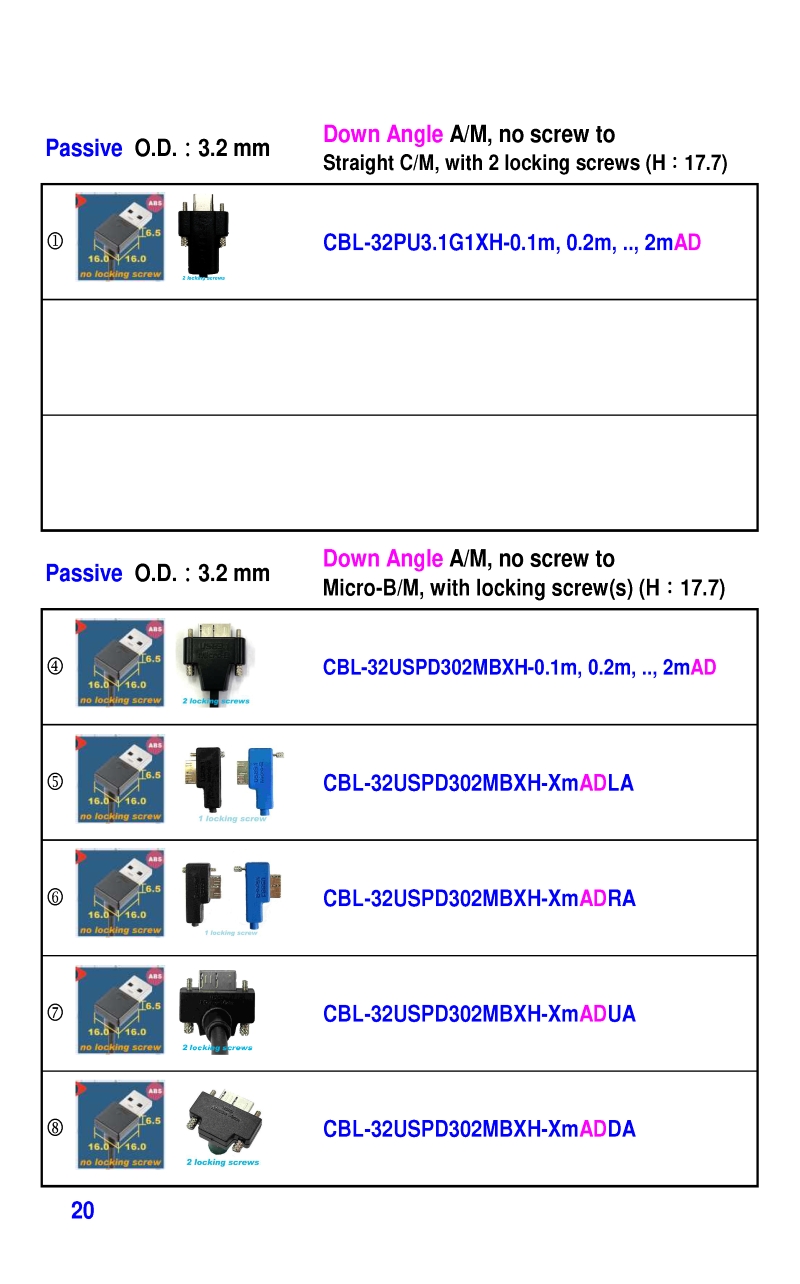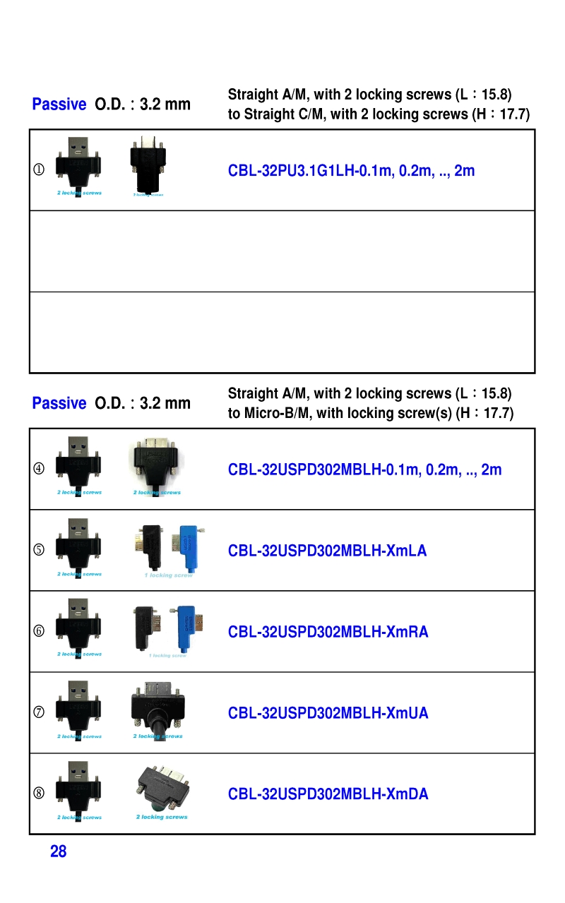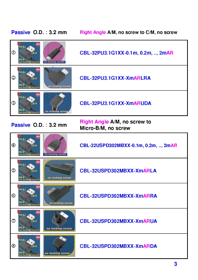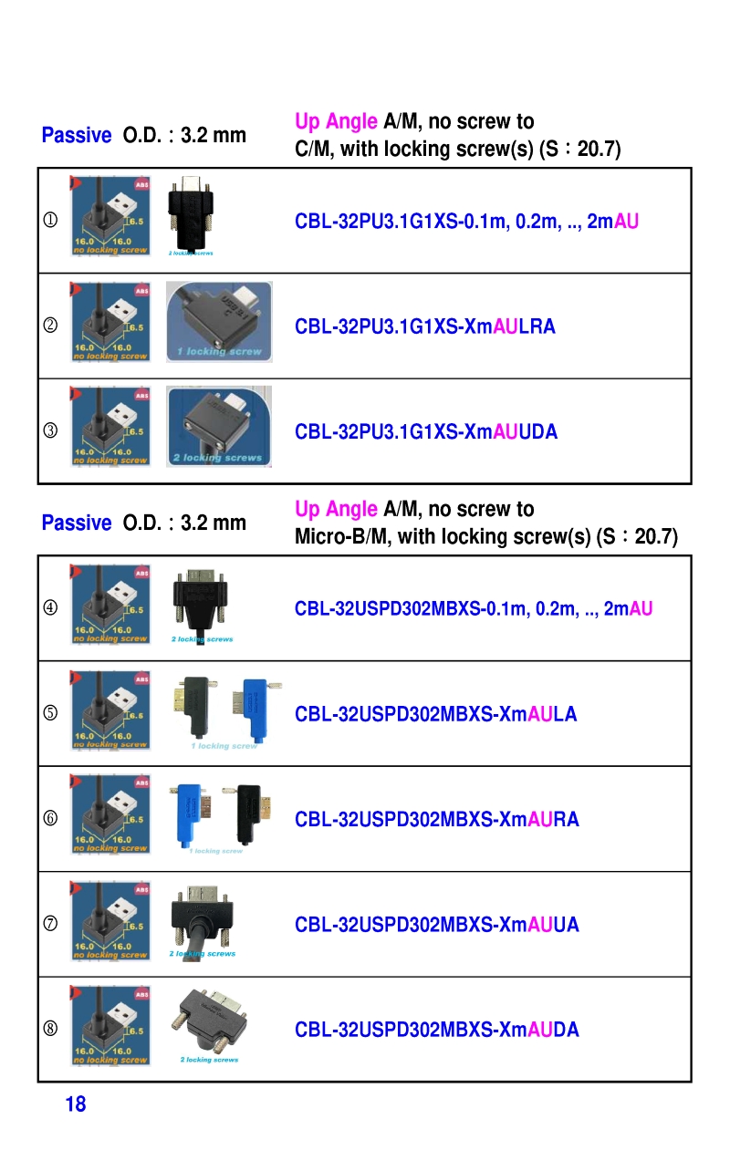 USB3 Straight A to Angled Micro-B or B Machine Vision Camera Cables-M/M