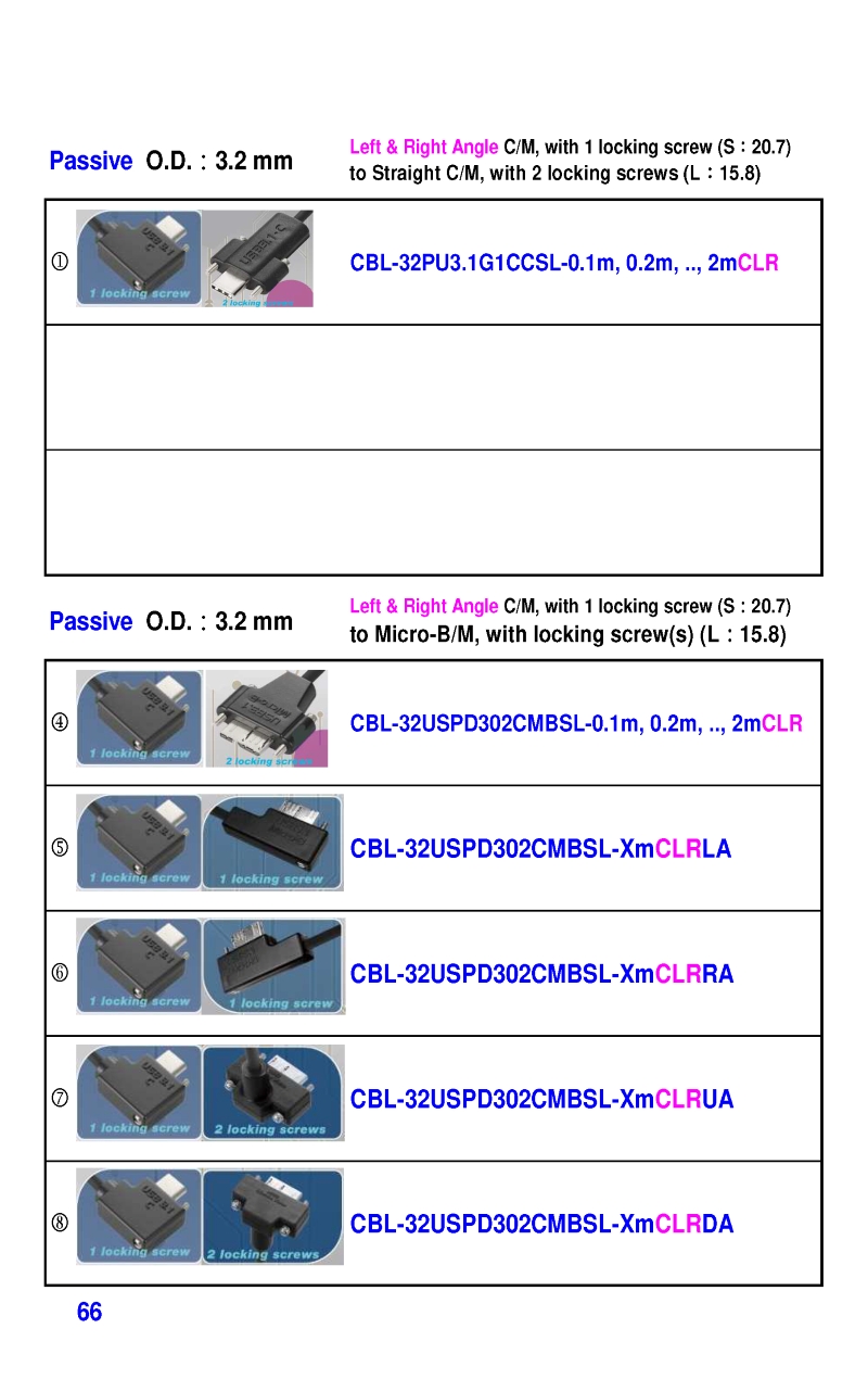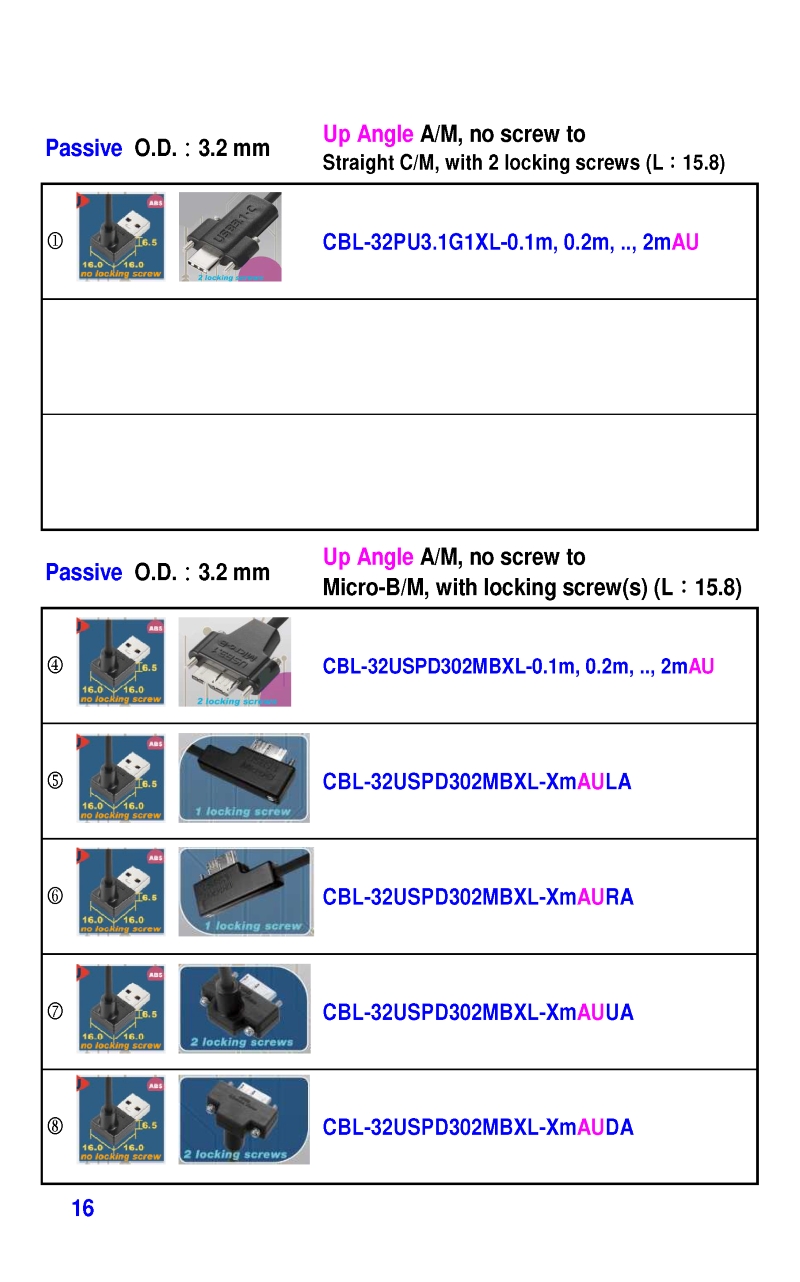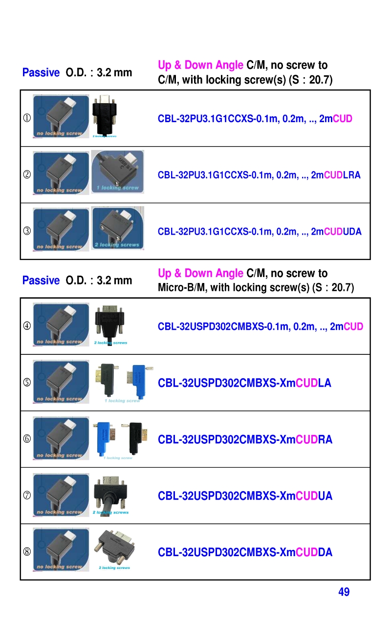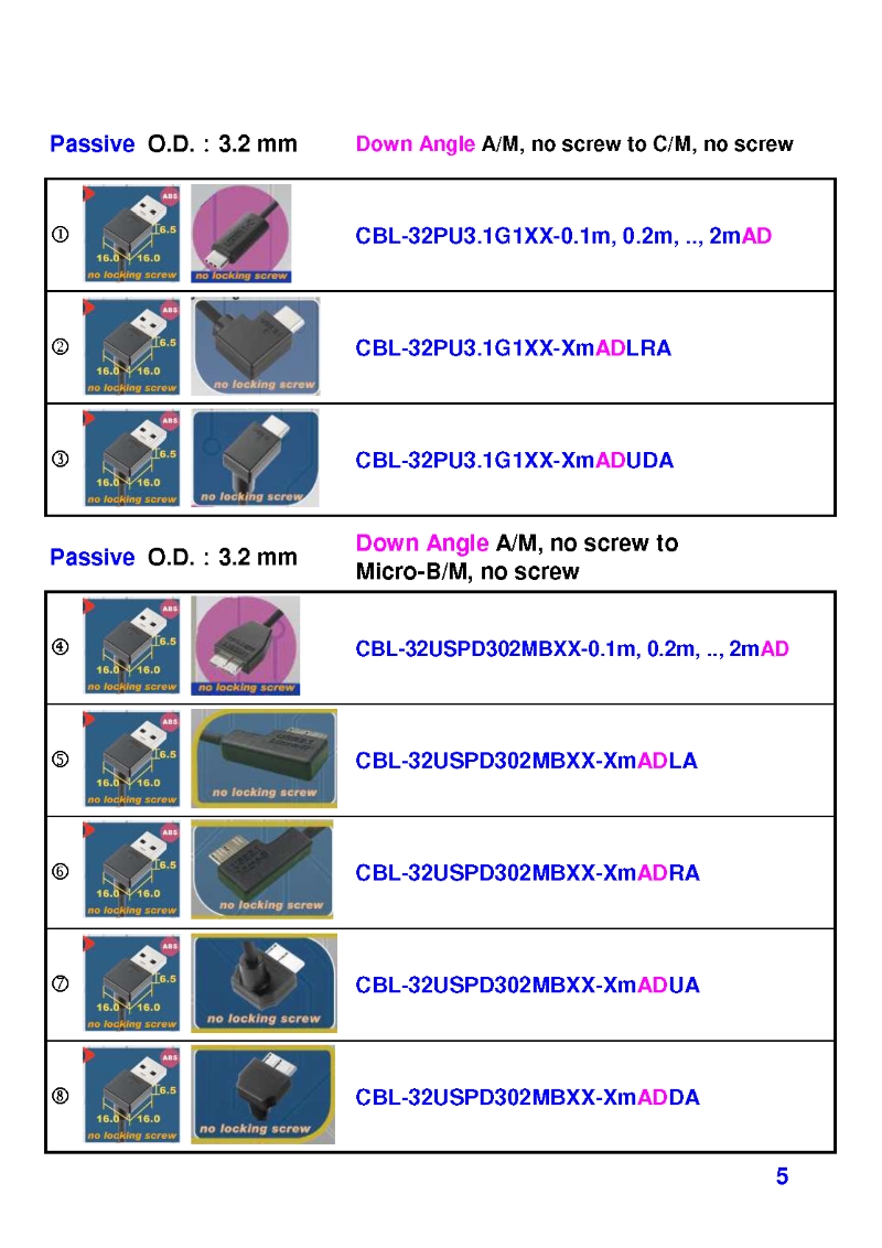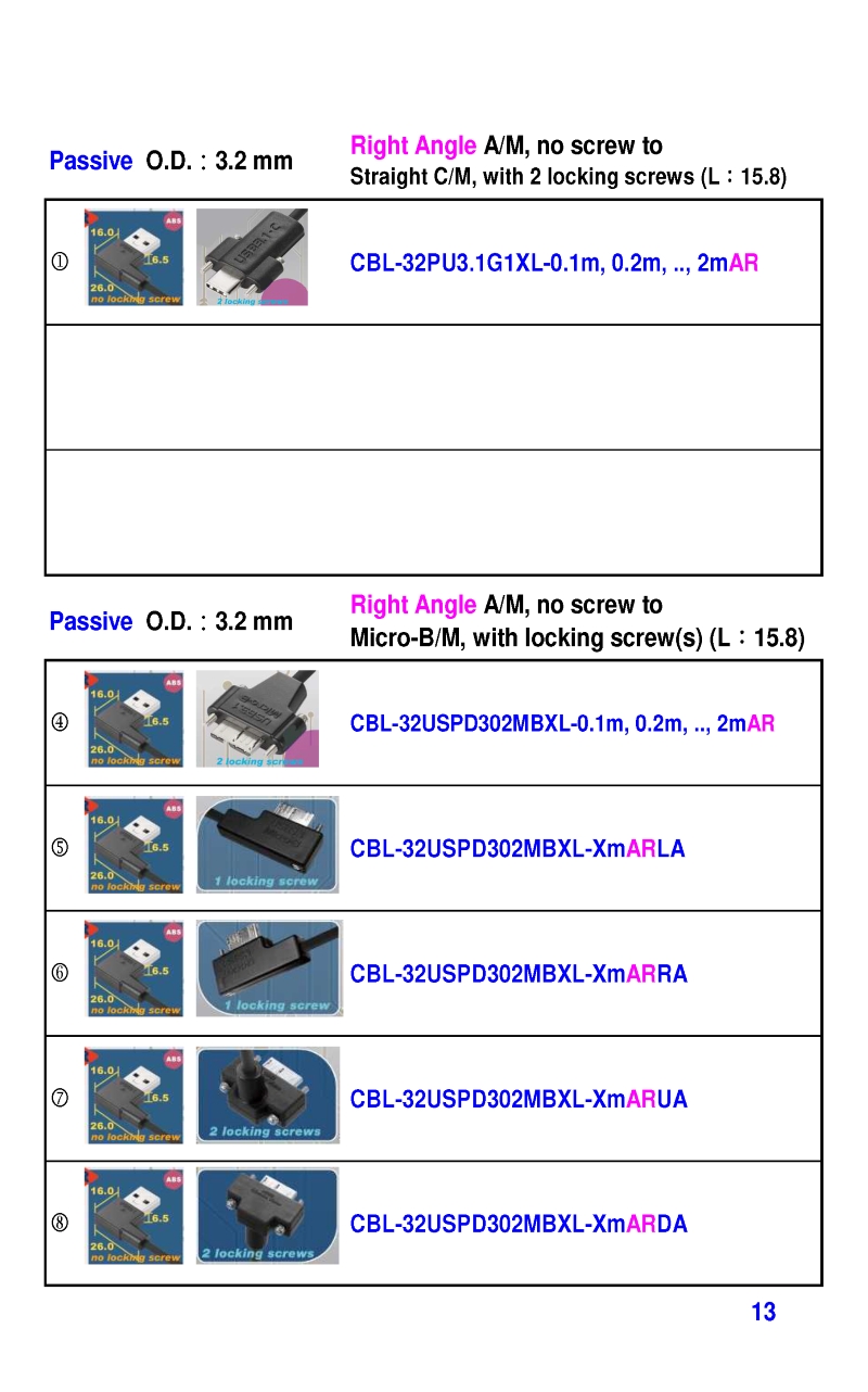 USB3 Straight A to Angled Micro-B or B Machine Vision Camera Cables-M/M
