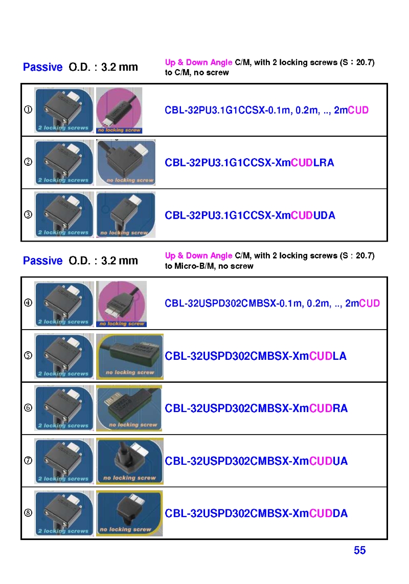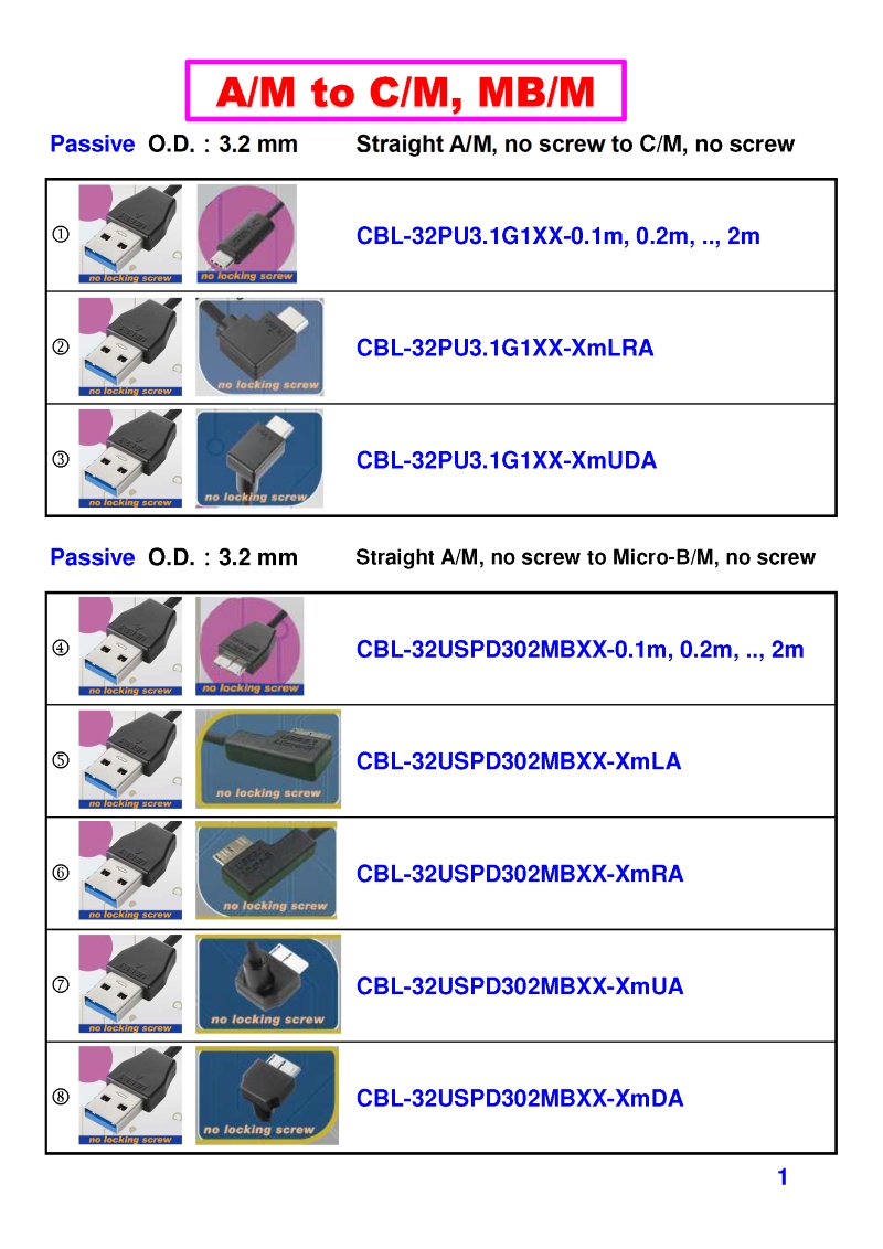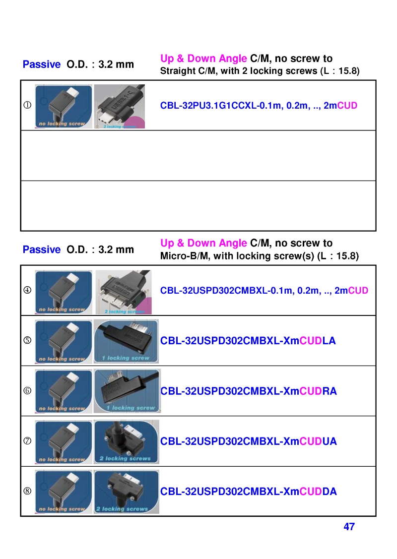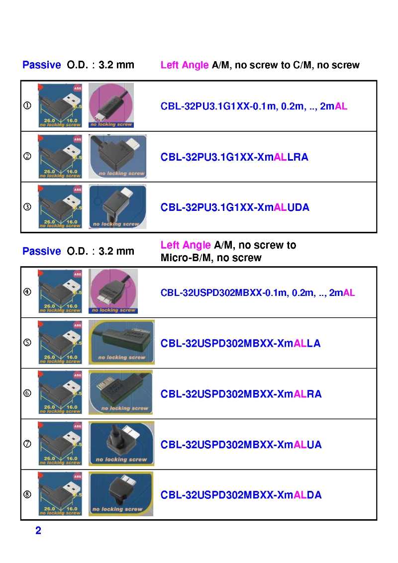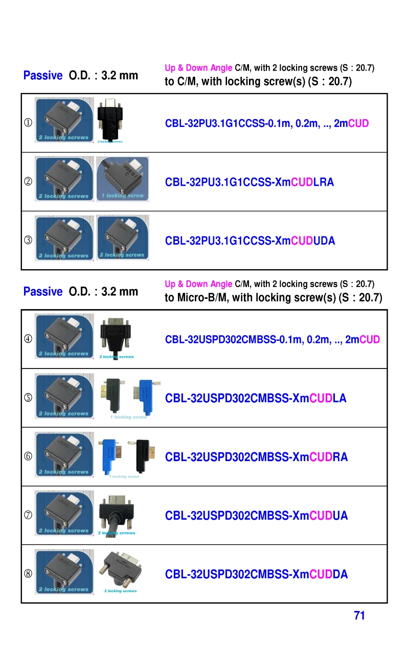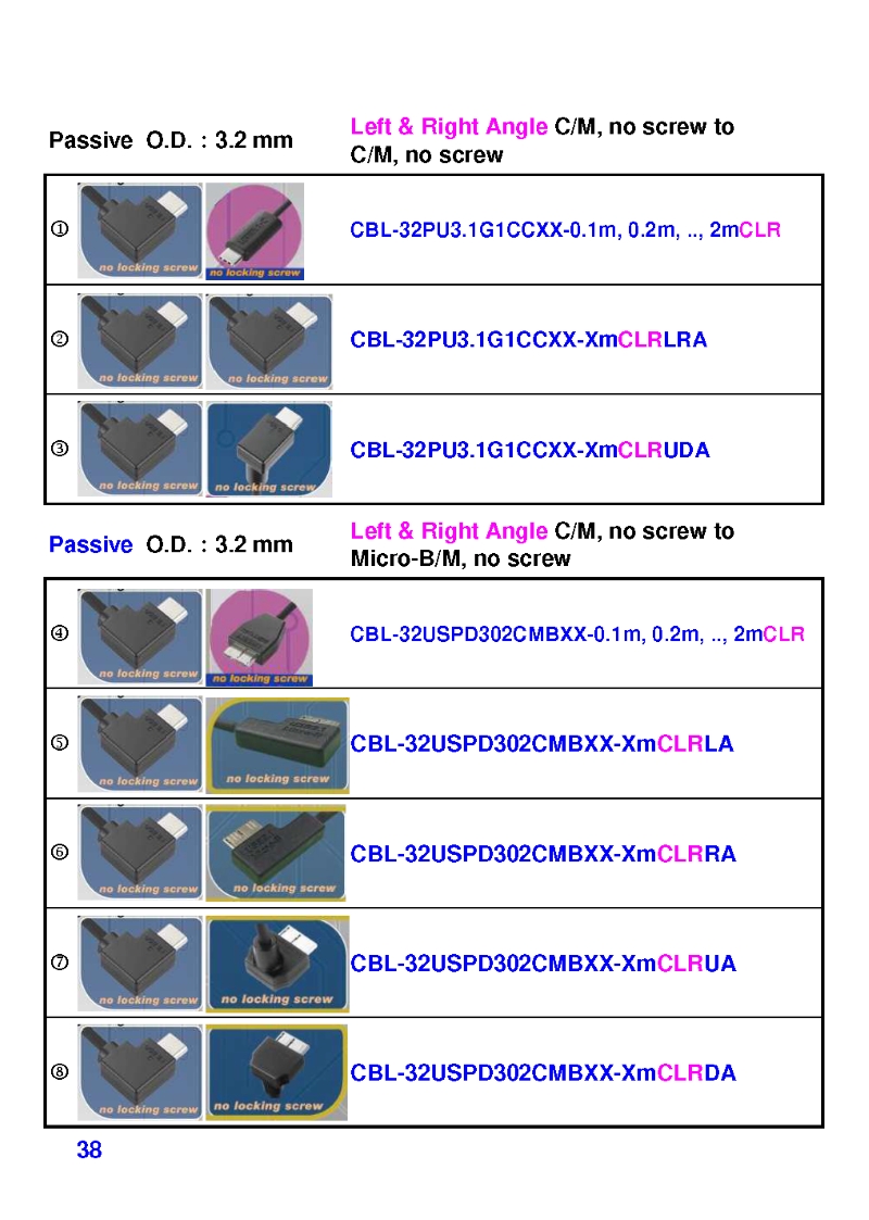 USB3 Straight A to Angled Micro-B or B Machine Vision Camera Cables-M/M